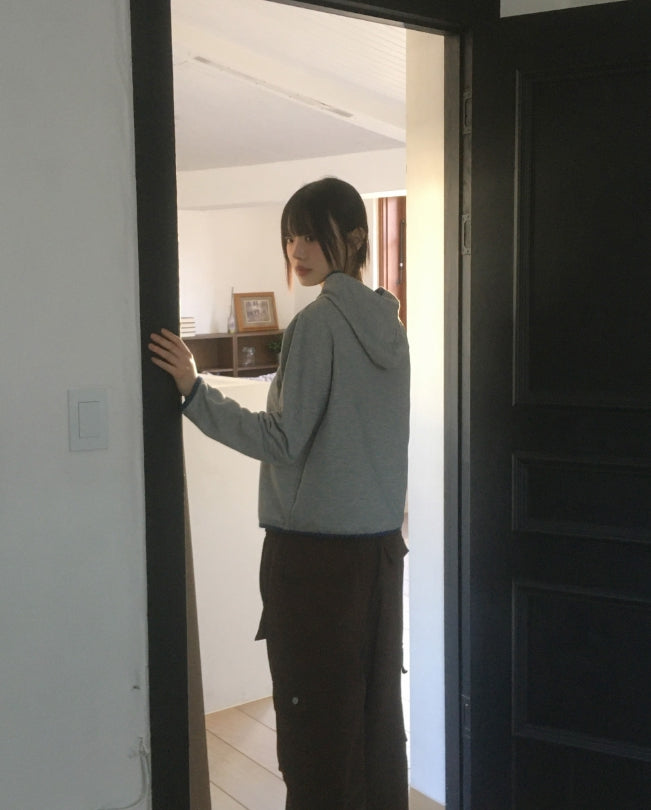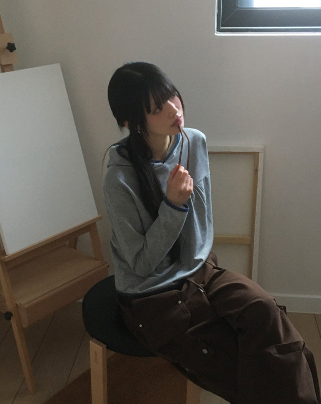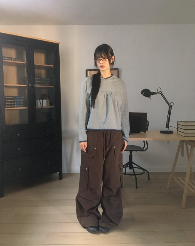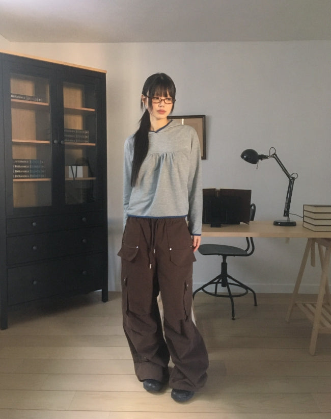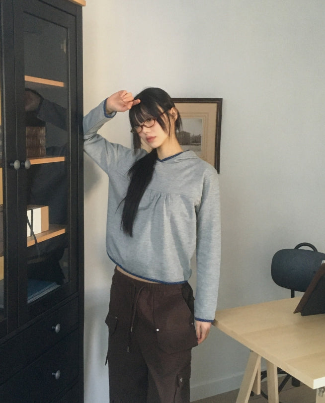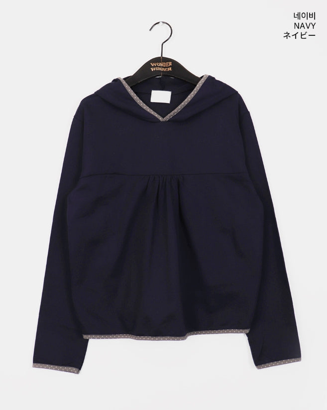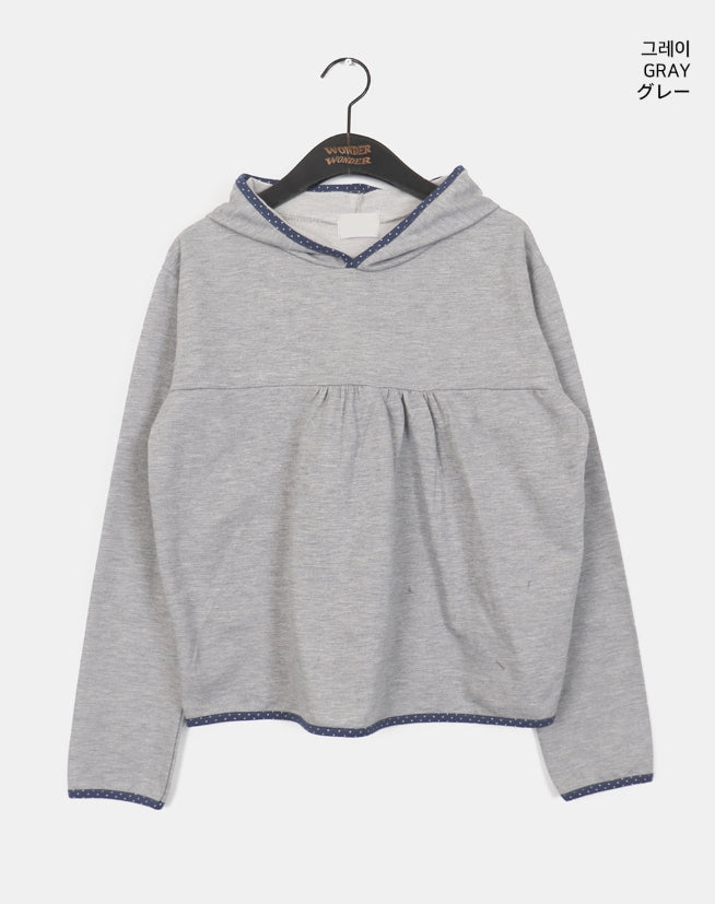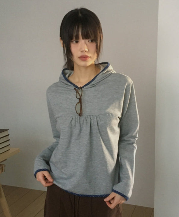 Peo Dot Color Matching Shirring Hood T-Shirt