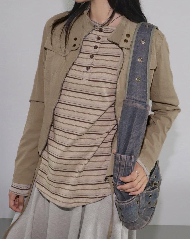 Petz Stripe Half Burton Long Sleeve T-Shirt