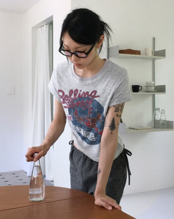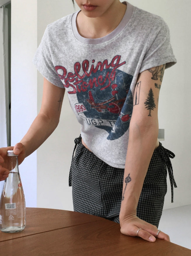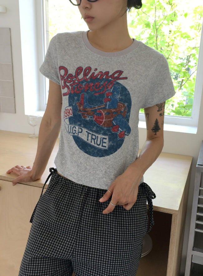 Peubo Terry Airplane Semi Crop Short Sleeve T-Shirt