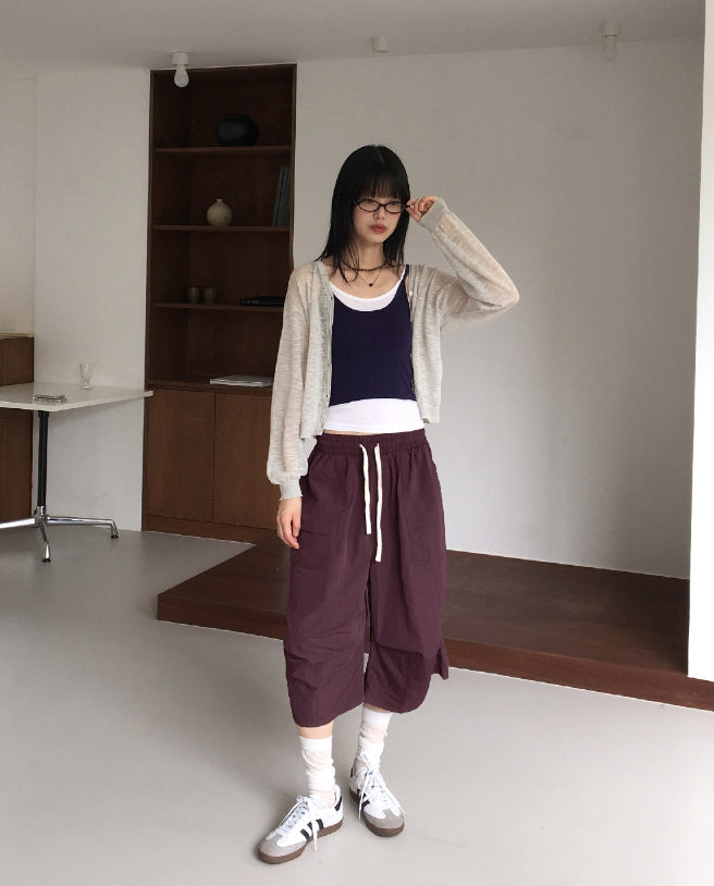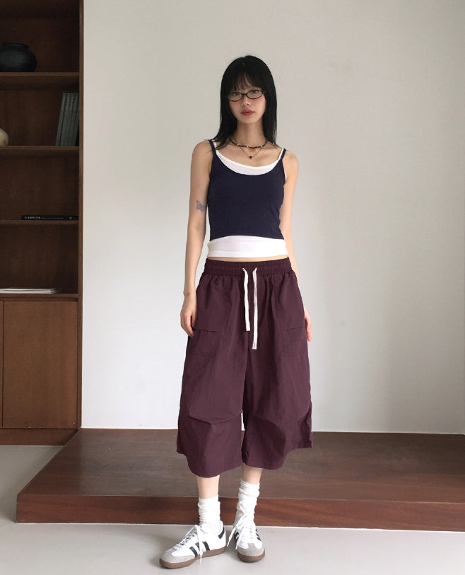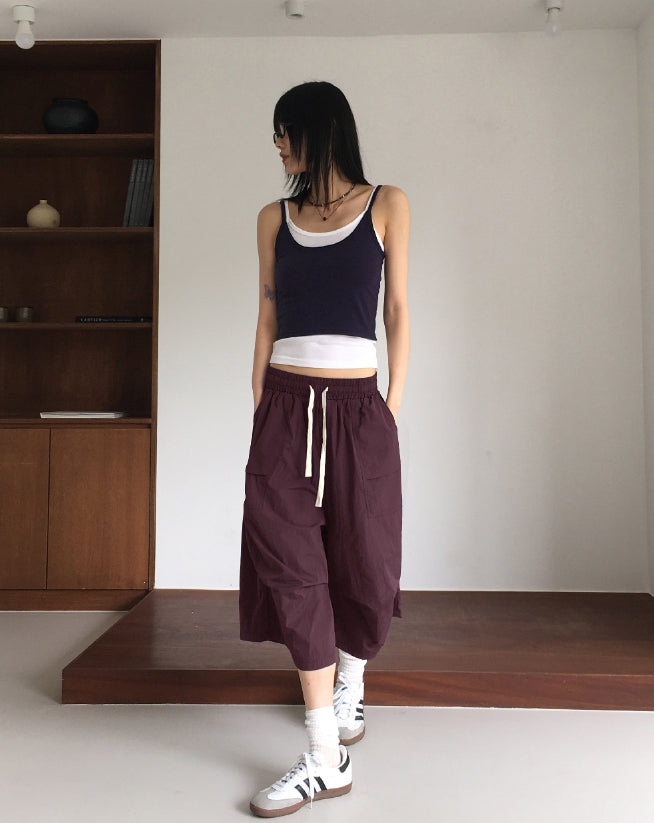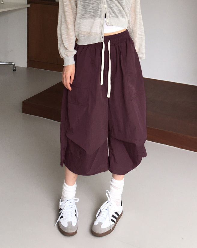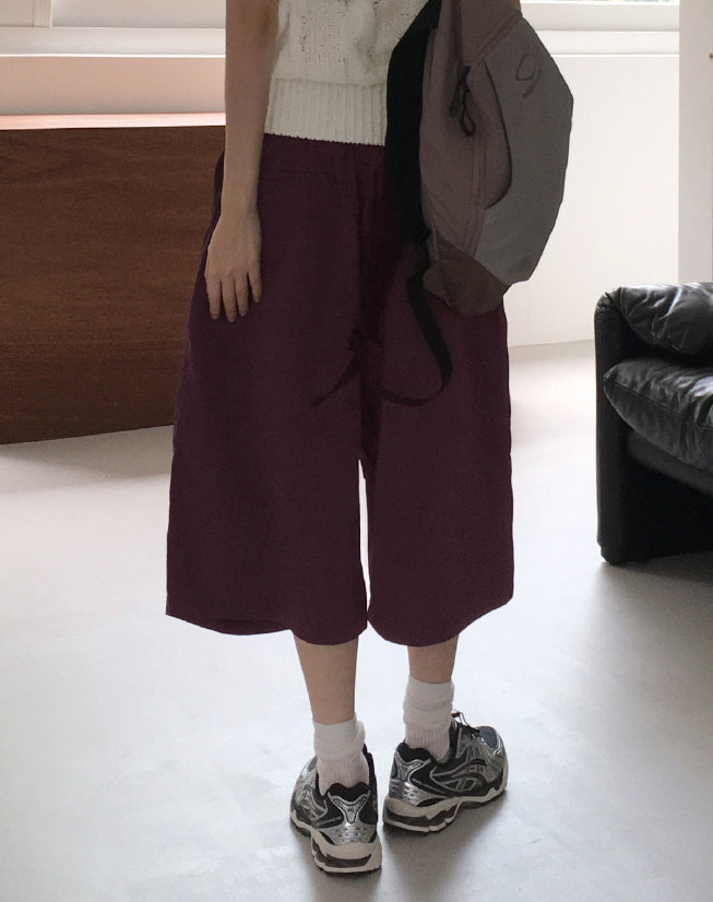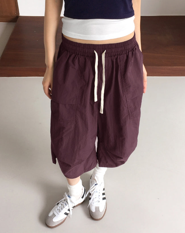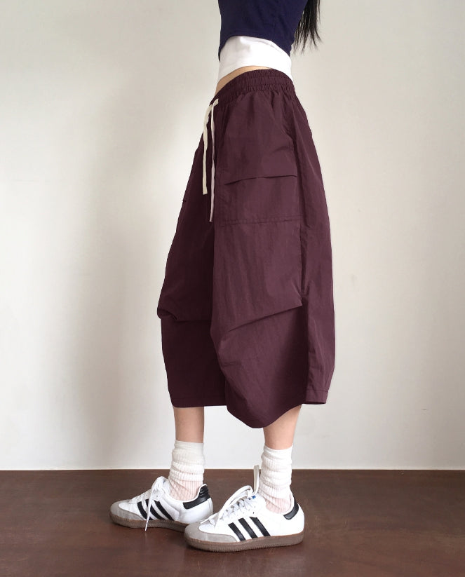 -ONE SIZE (ウエスト(ゴム)68-110 ヒップ134 股上35.5 股下29.5 もも周り79 裾周り70 総丈65)