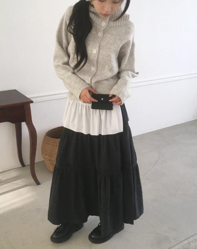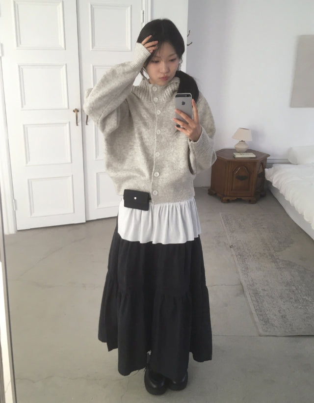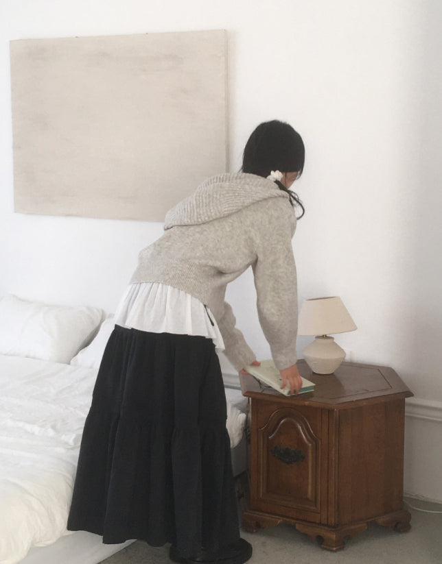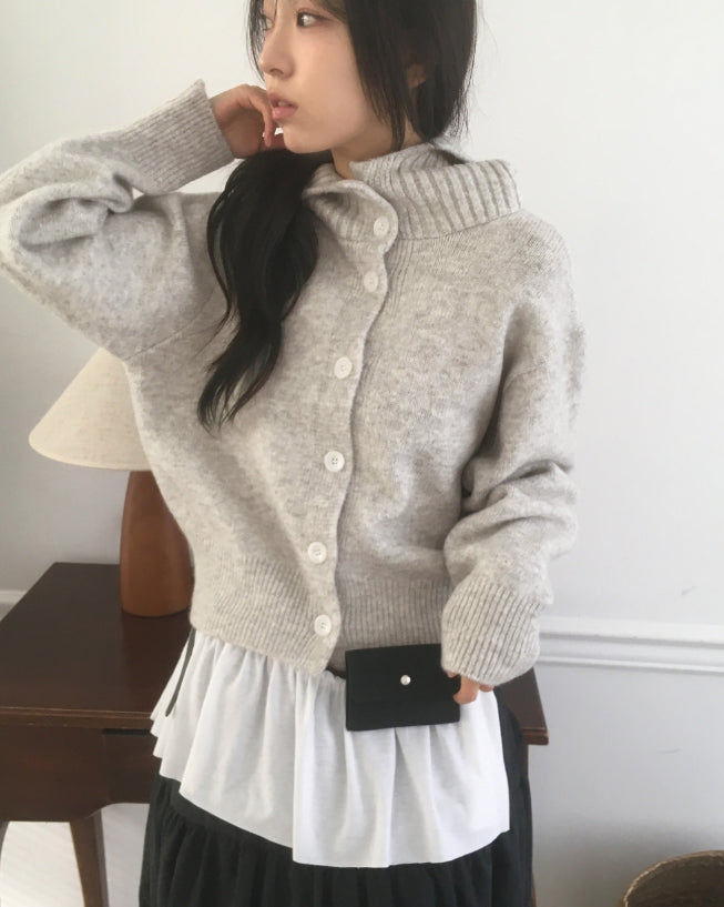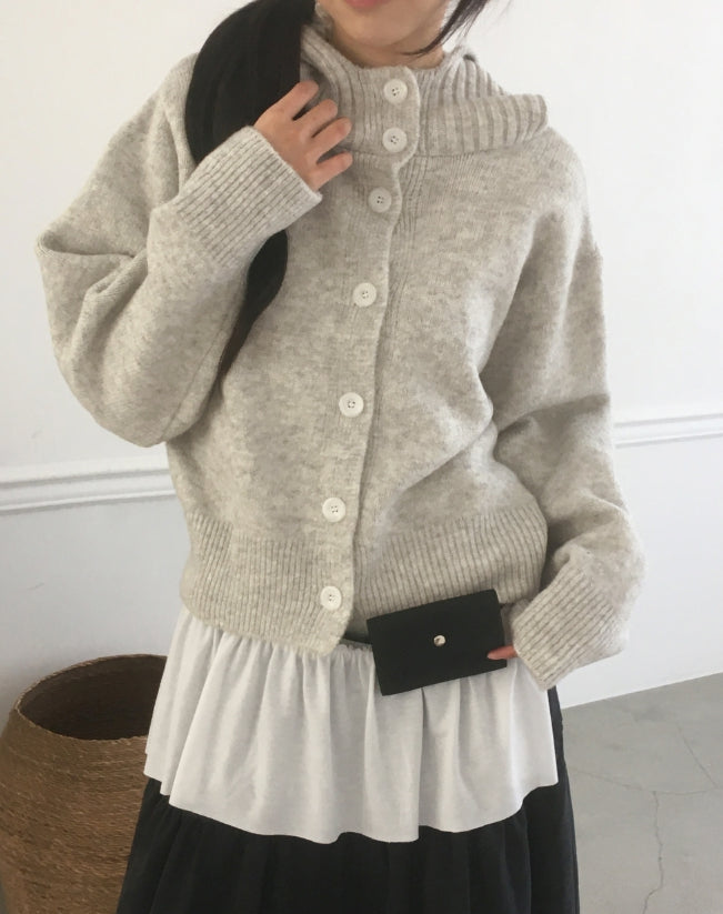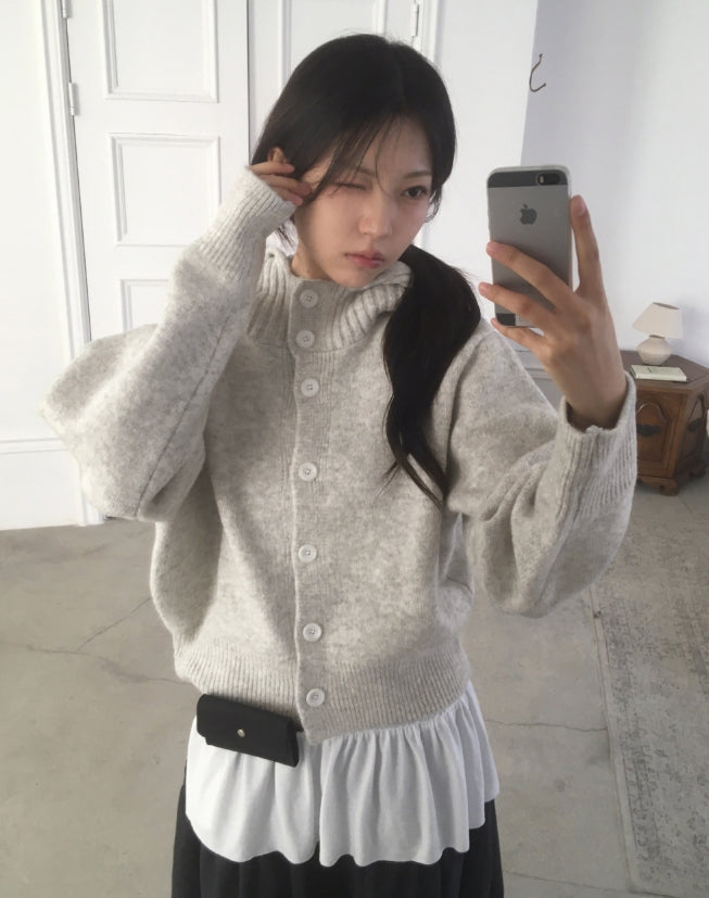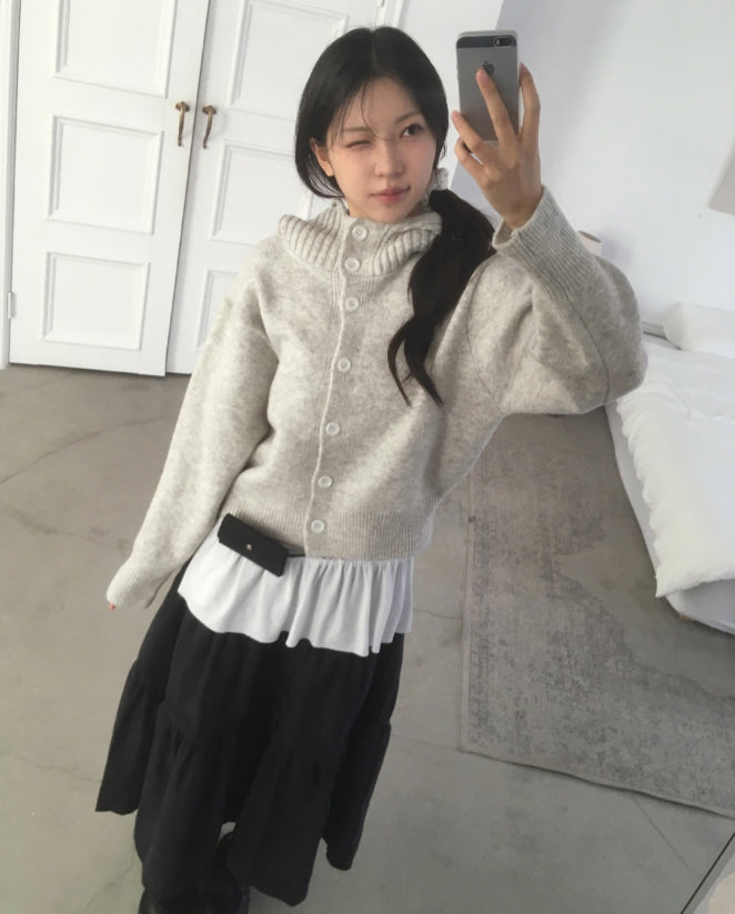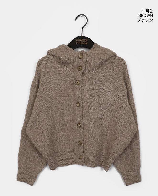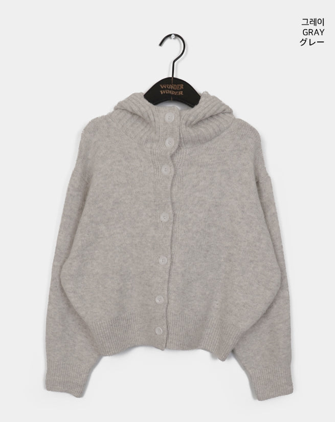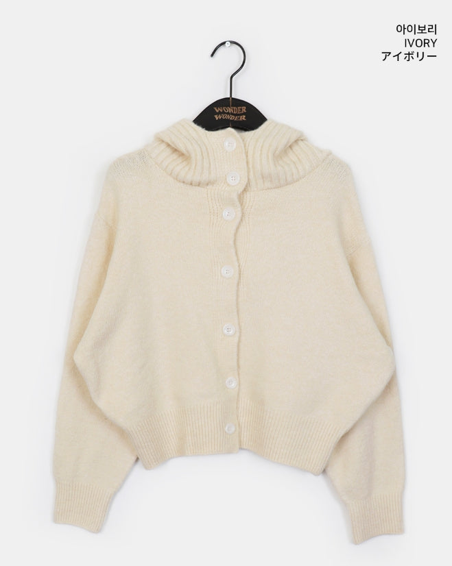 フォトンアバンピットハイネックボタンフードカーディガン