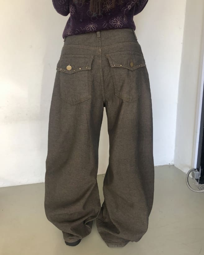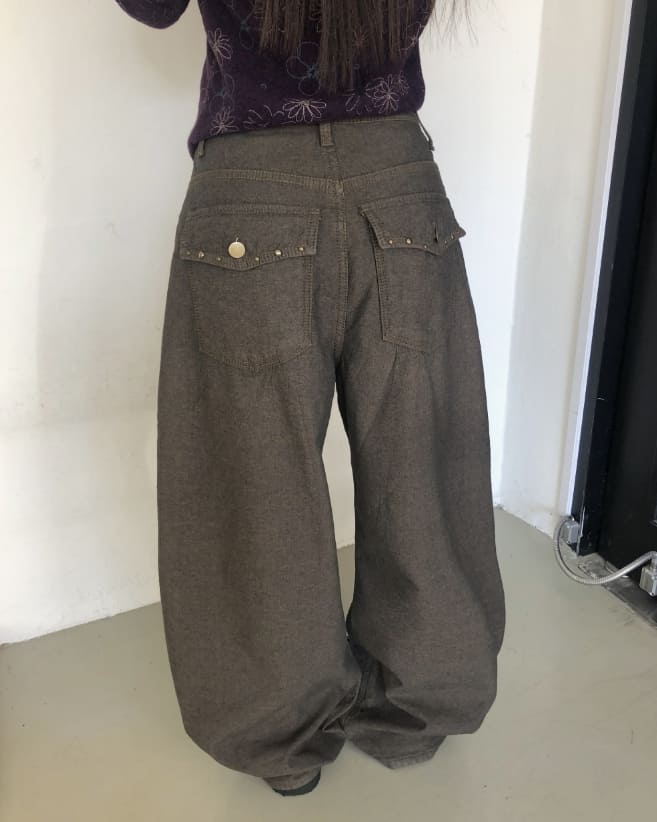 Piin Stud Brushed Vintage Wide Pants