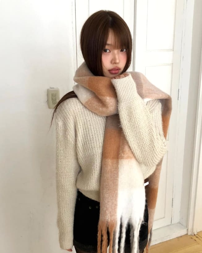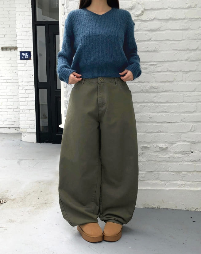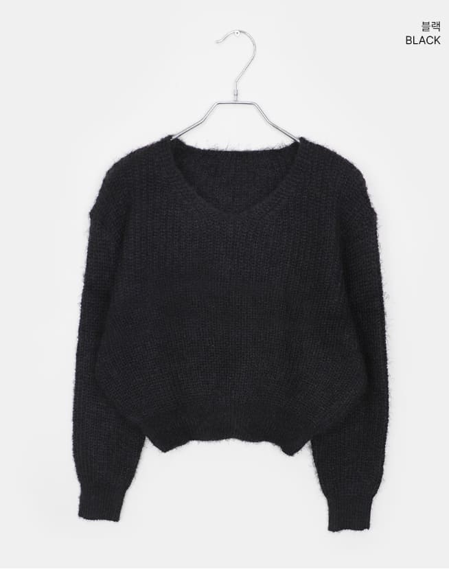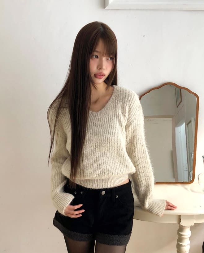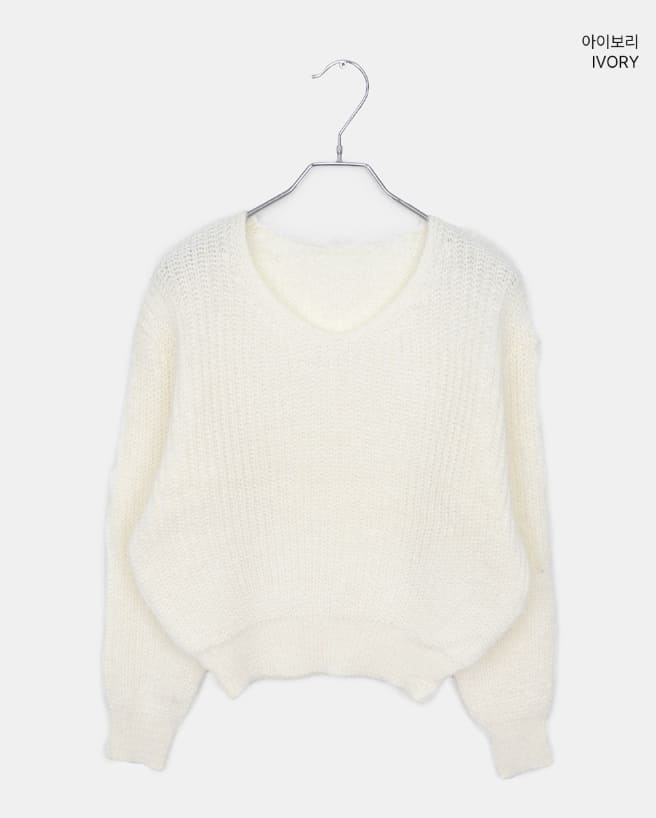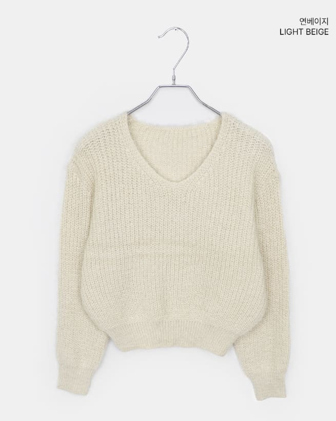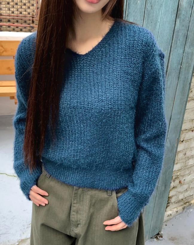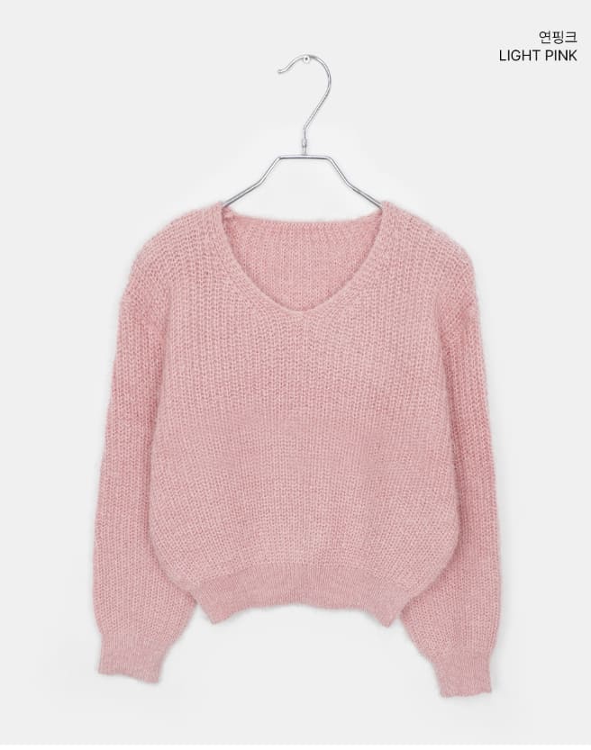 ピミンアンゴラVネック長袖ニット