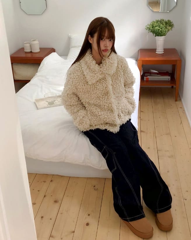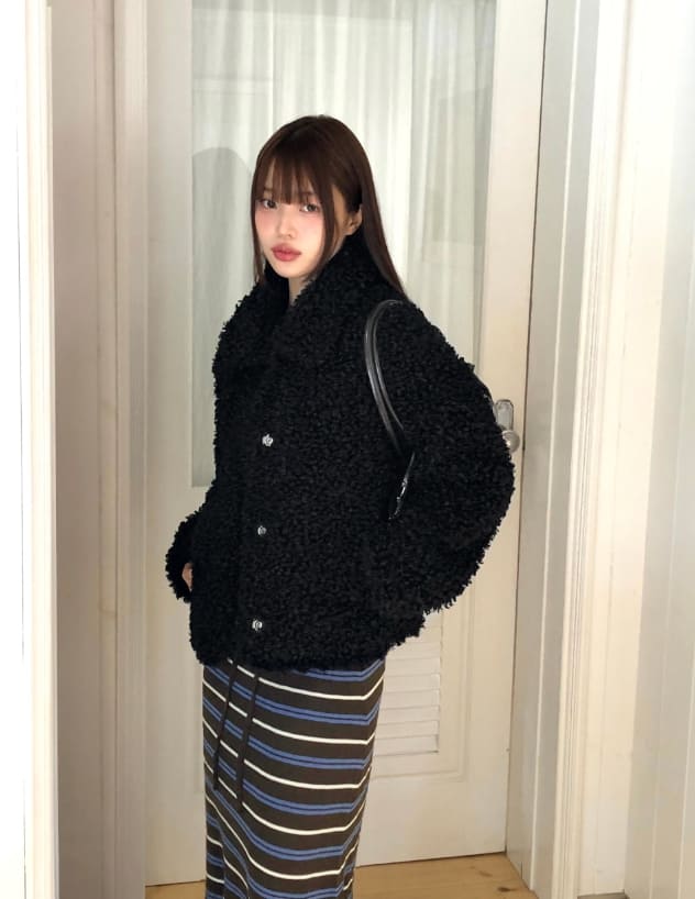 Piru Half Poodle Fluffy Fur Coat Jacket