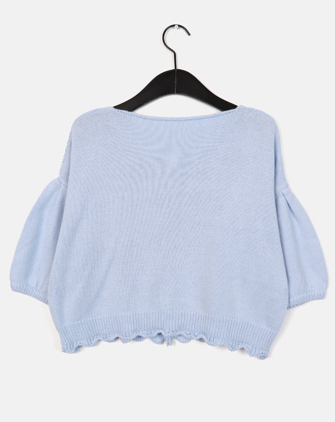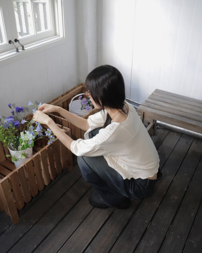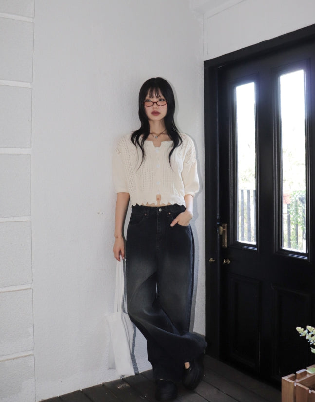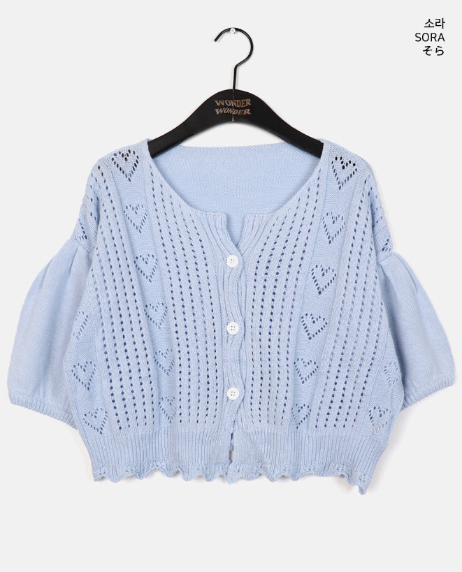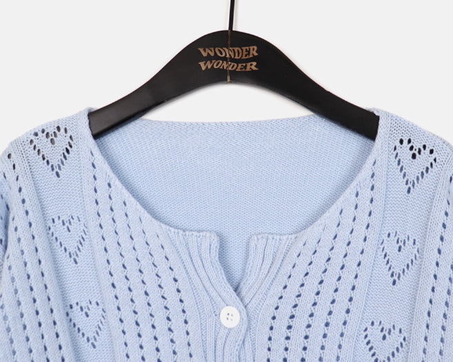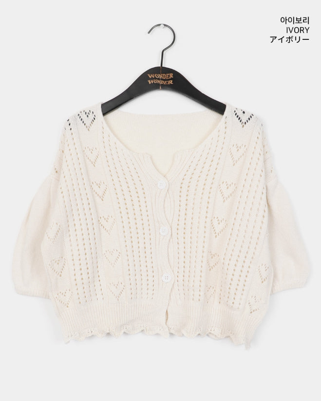 Podot Heart Punching Half-Sleeved Knit Cardigan