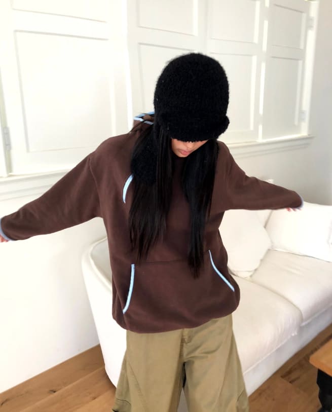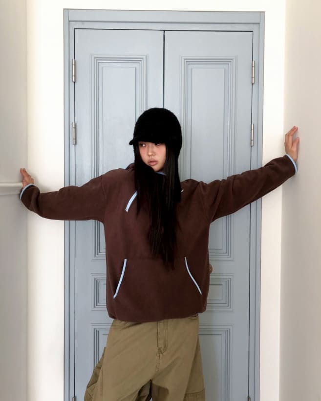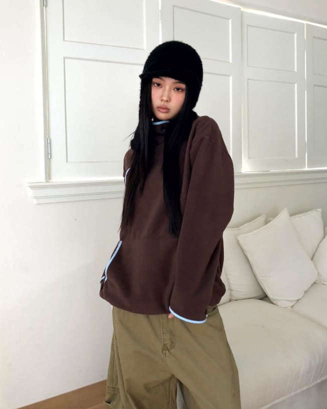 ポナンカラーダイアゴナルハーフジップアップブラッシュフードTシャツ