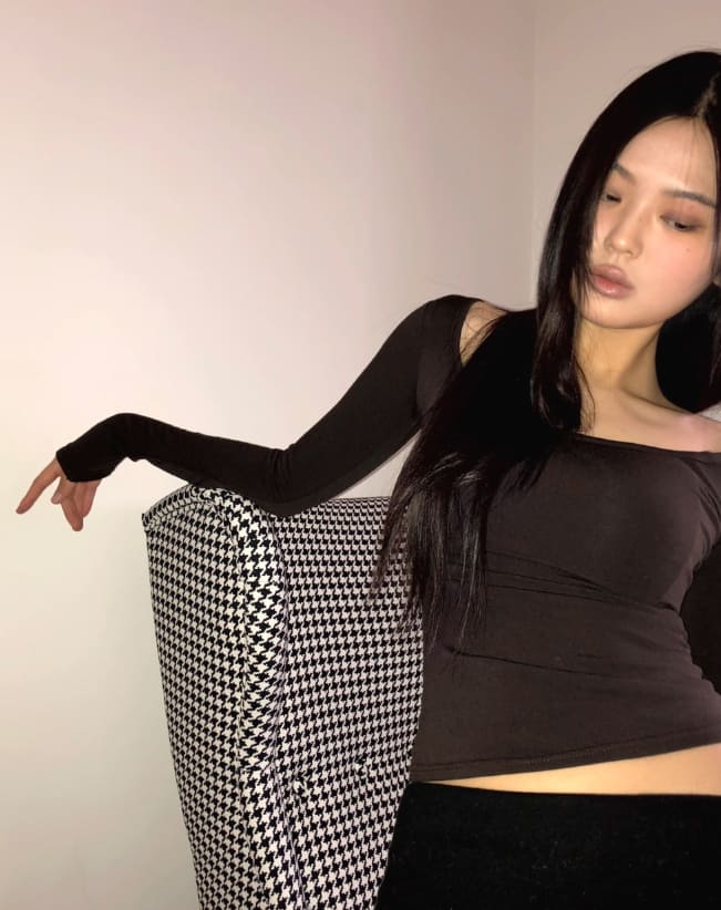 プミンスクエアネック起毛スリムTシャツ