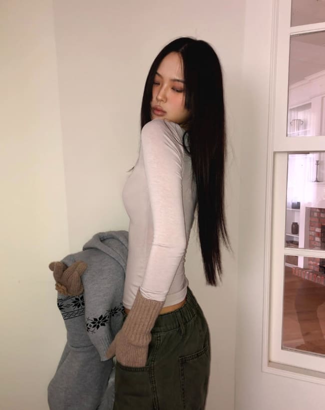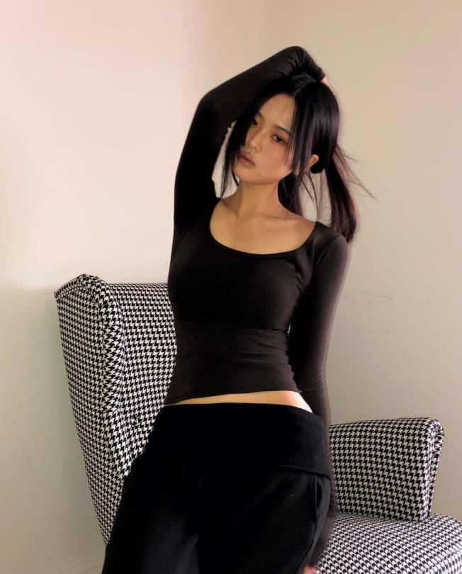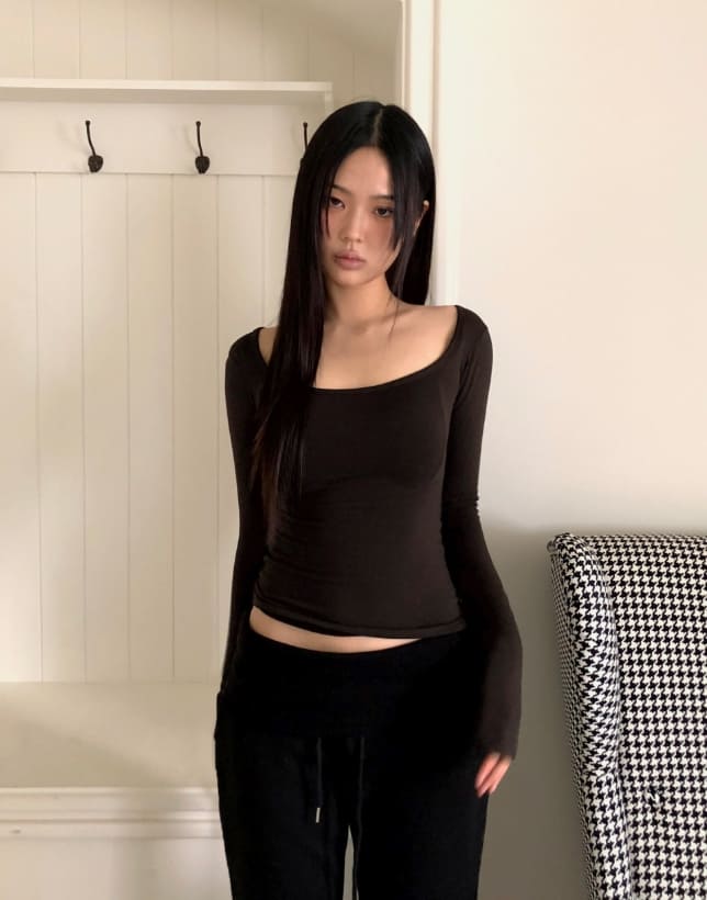 プミンスクエアネック裏起毛スリムTシャツ