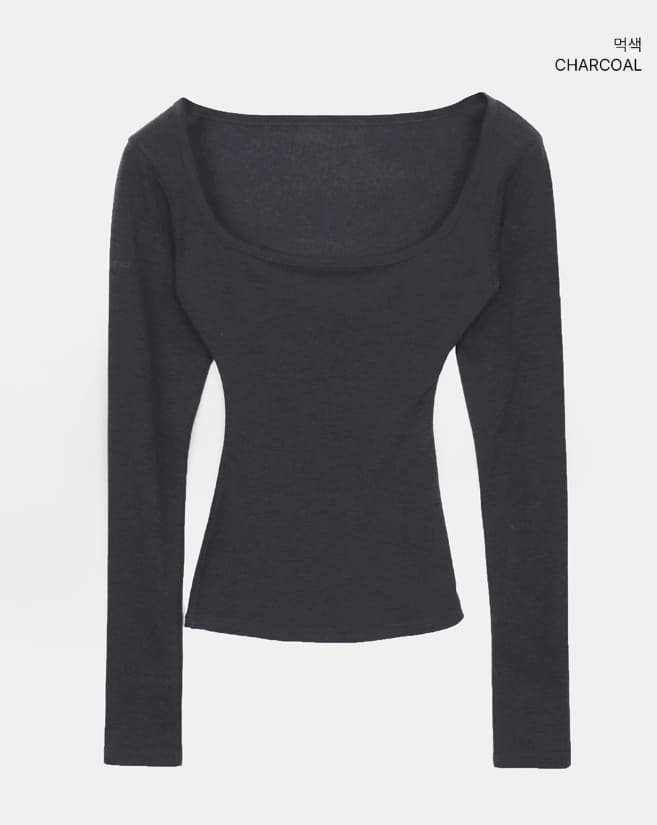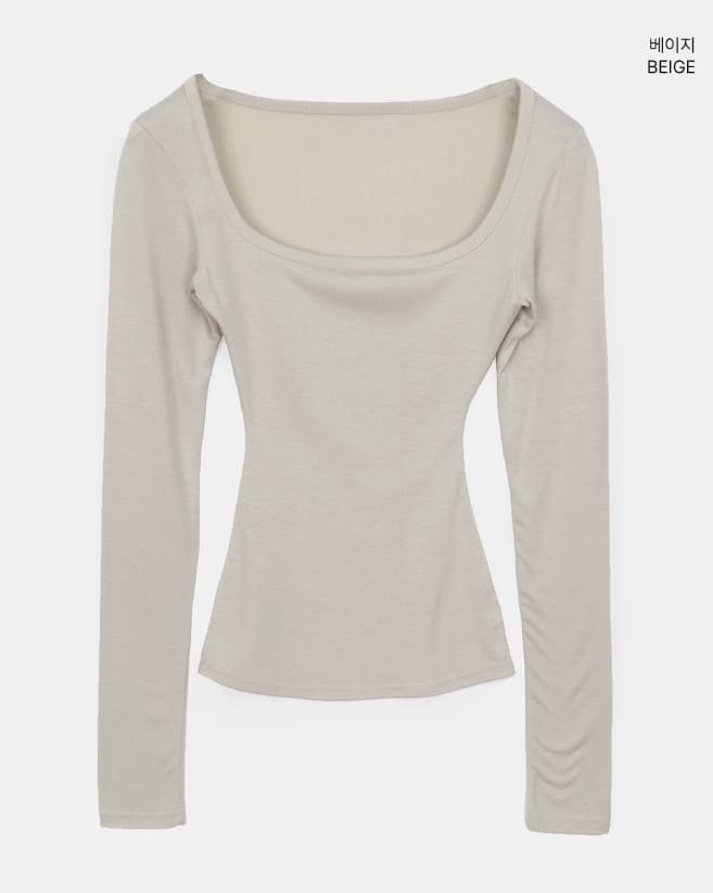 Pumin Square Neck Brushed Slim T-Shirt