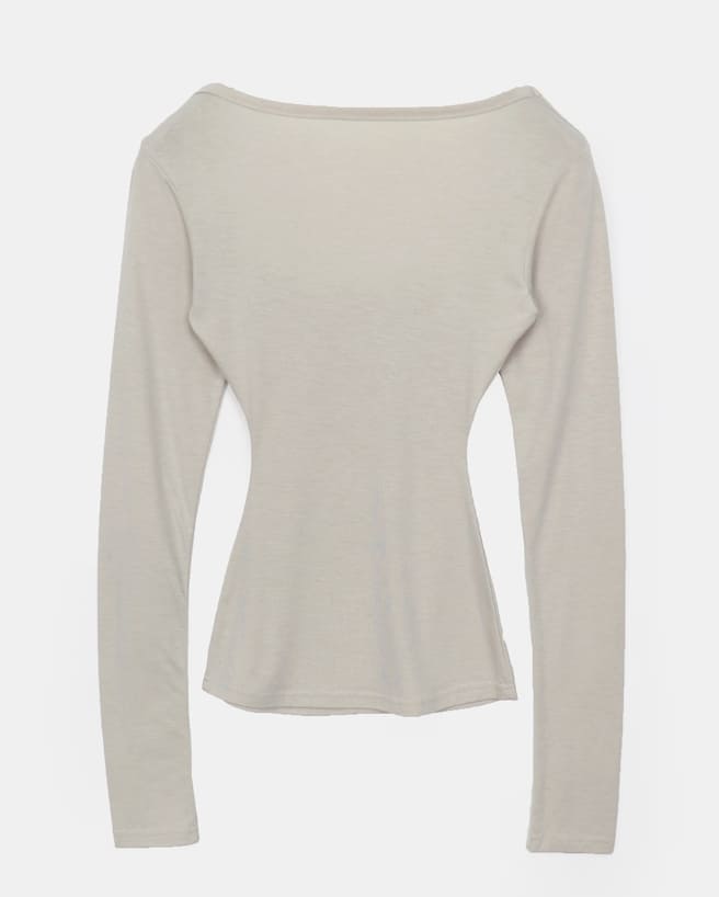 Pumin square neck fleece slim t-shirt