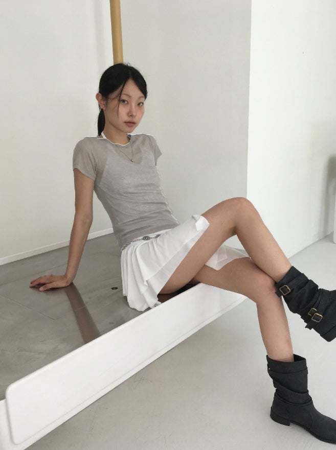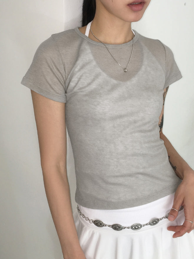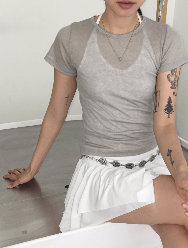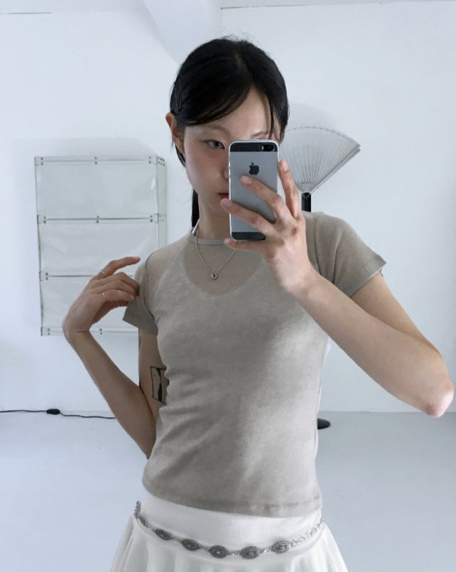 クォディシースルーウールテンセルレイヤード半袖Tシャツ