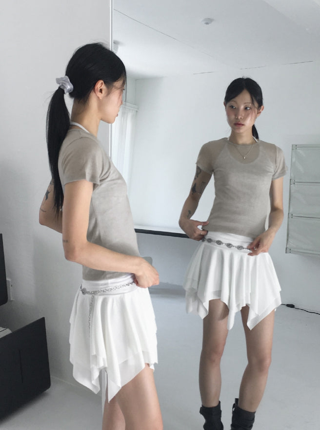 Quady see-through wool tensel layered short-sleeved T-shirt
