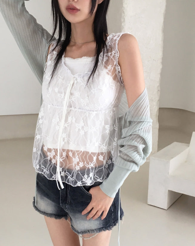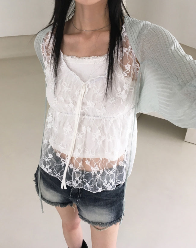 Racine Summer V-neck Ribbon Strap Shawl Bolero Cardigan
