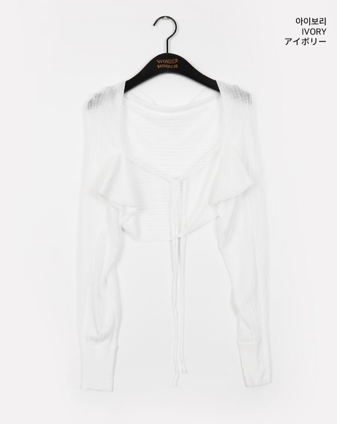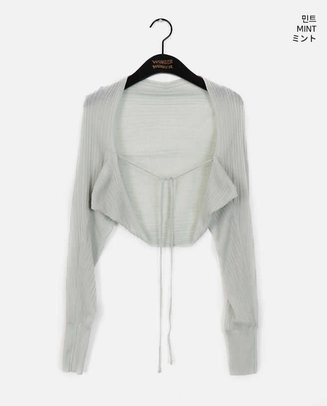 Racine Summer Ribbed Ribbon String Shawl Bolero Cardigan