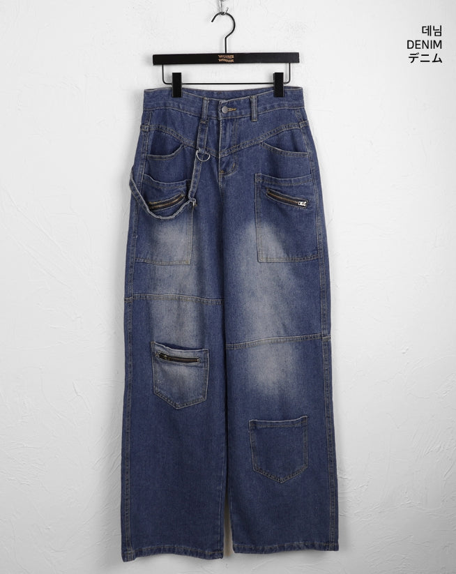 Radi Unique Zipper Pocket Long Wide Denim Pants