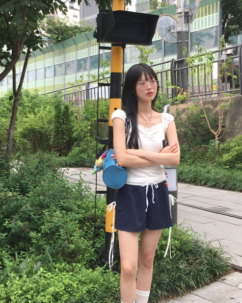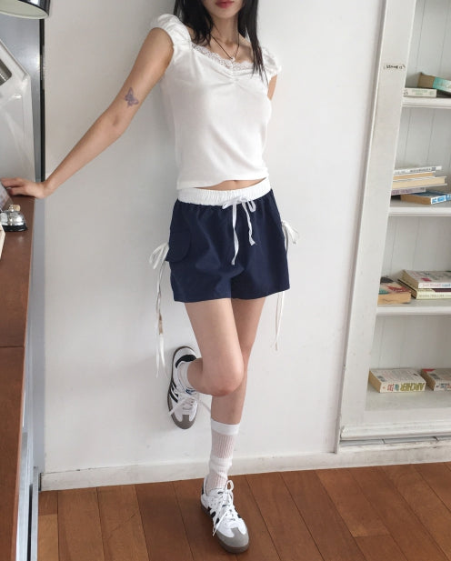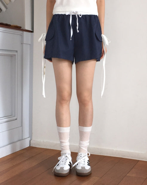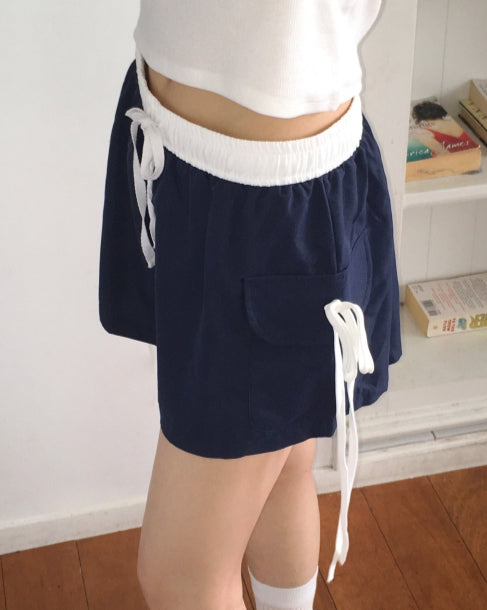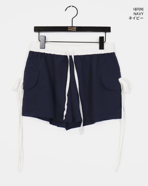 Raffen Banding Color Matching Ribbon Pocket Shorts