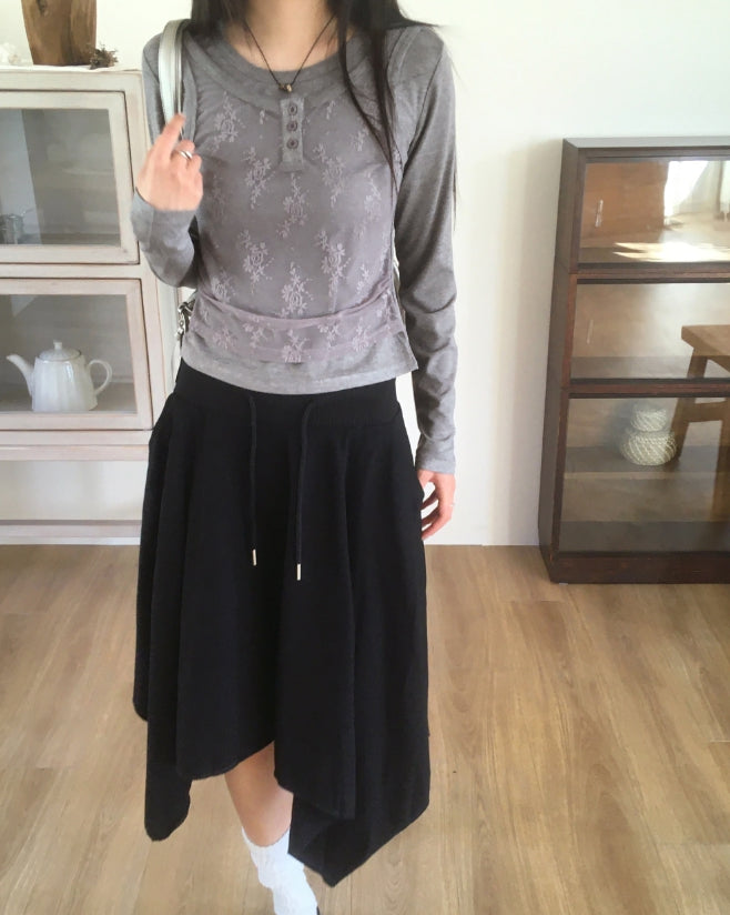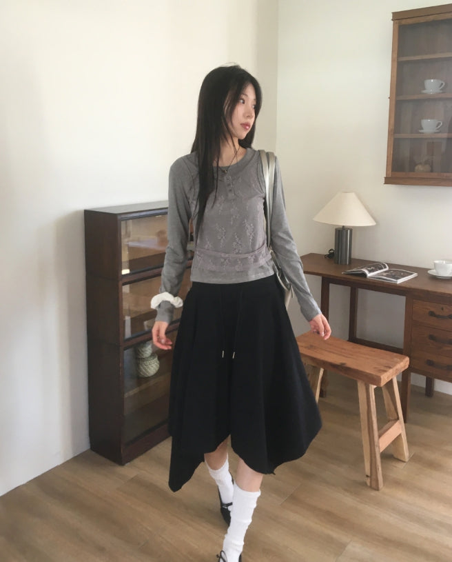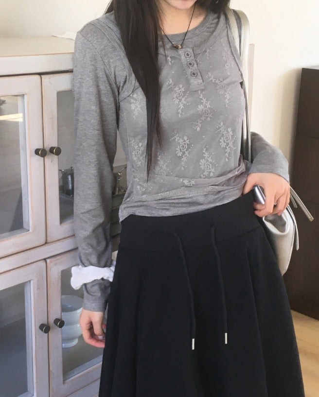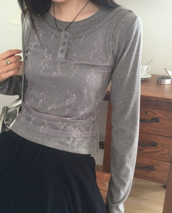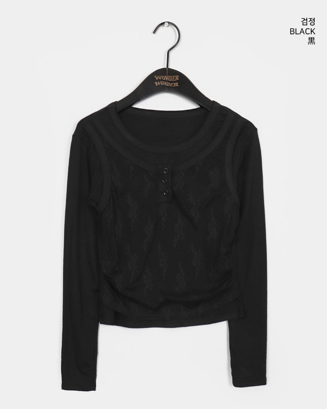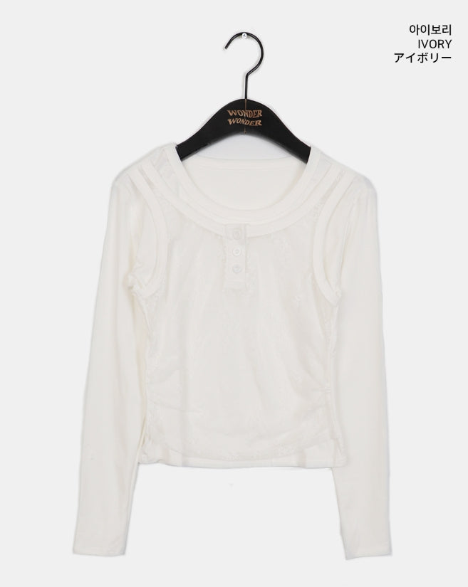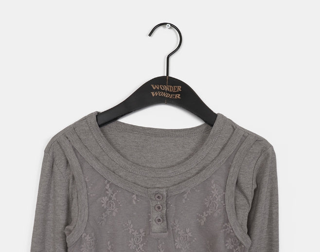 レッカーレースボタンキャミソールレイヤードTシャツ