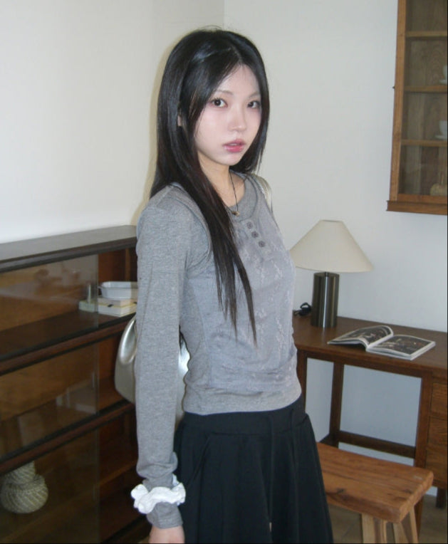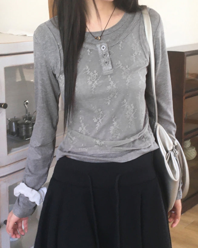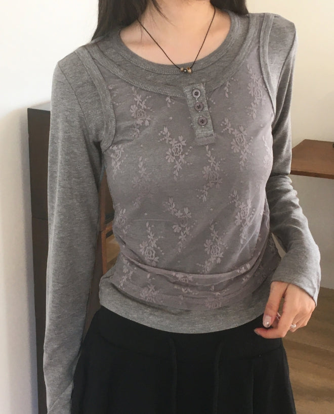 レッカーレースボタンナシレイヤードTシャツ