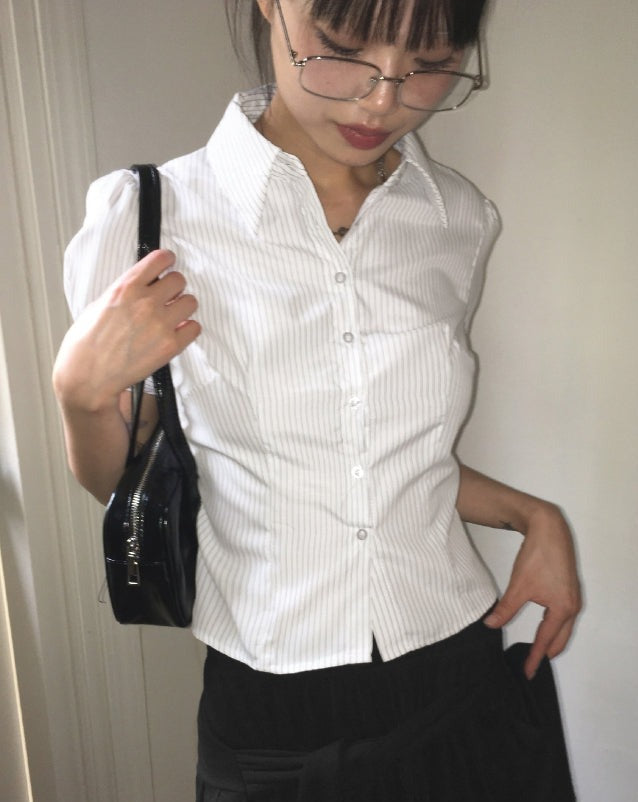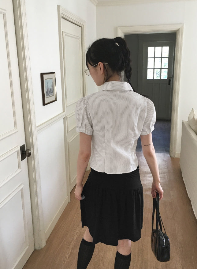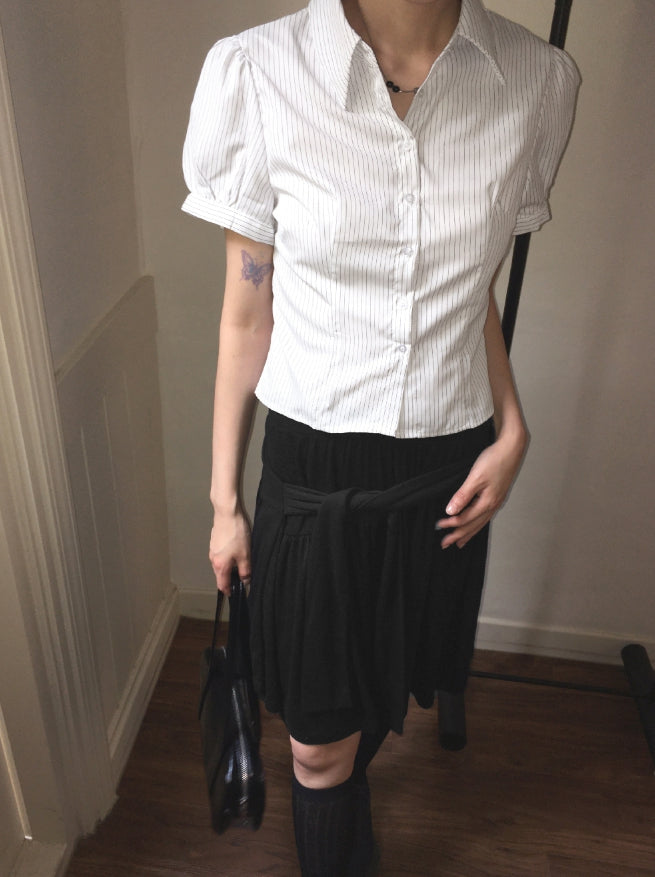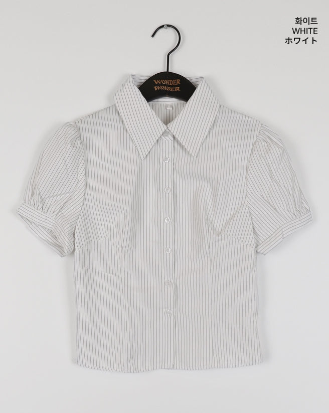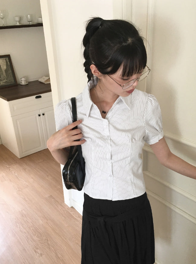 Reupat Slim Striped Puff Short Sleeve Shirt