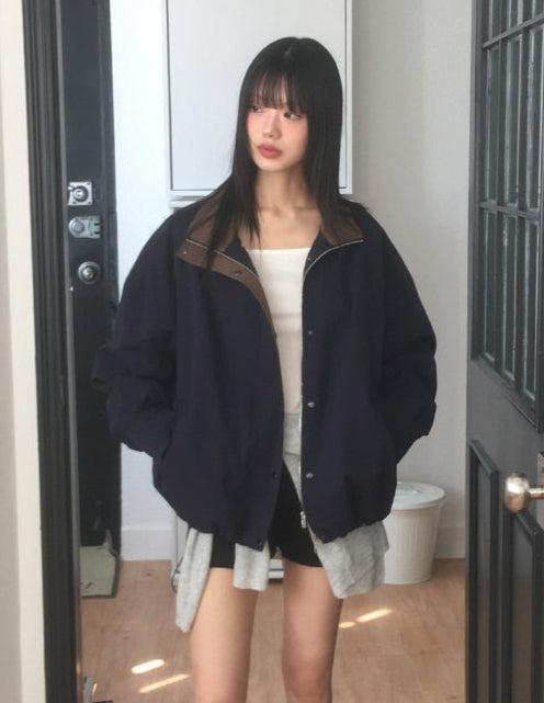 Richu Collar Color Matching Overfit Cotton Field Jacket