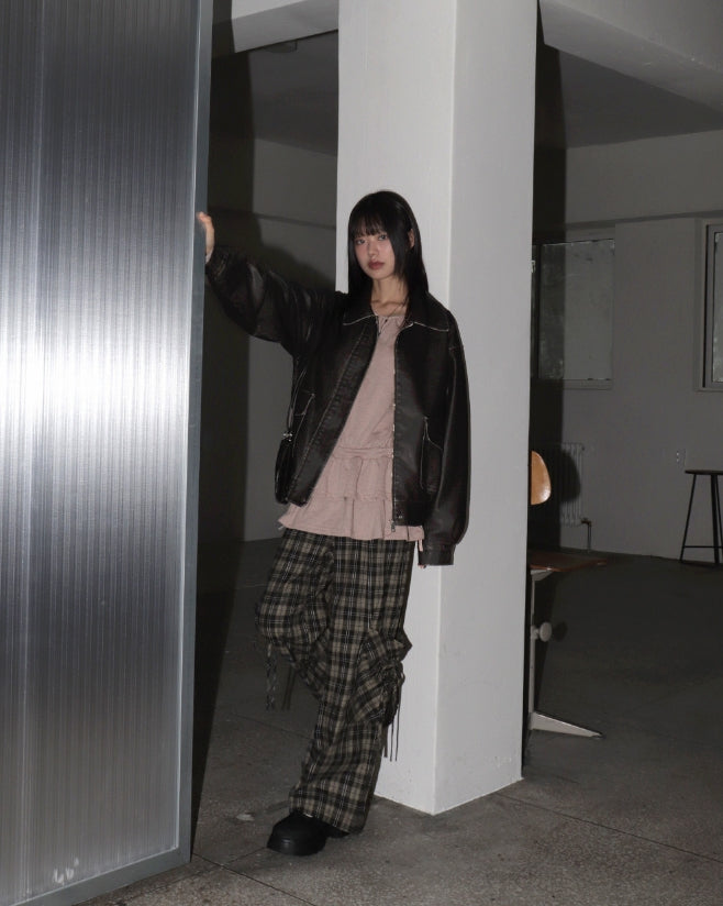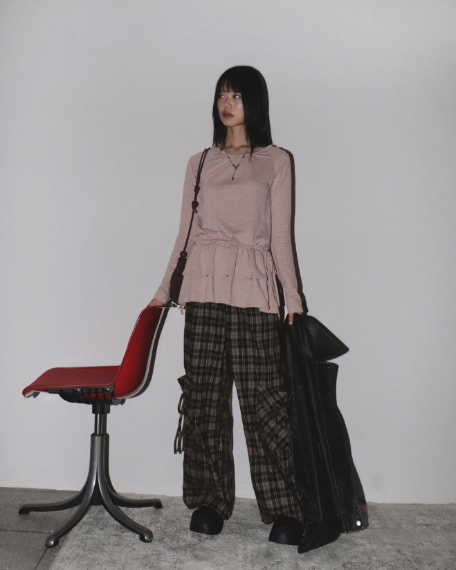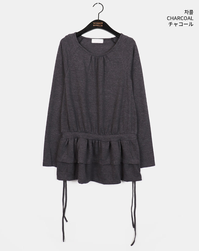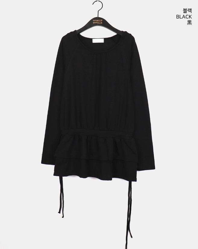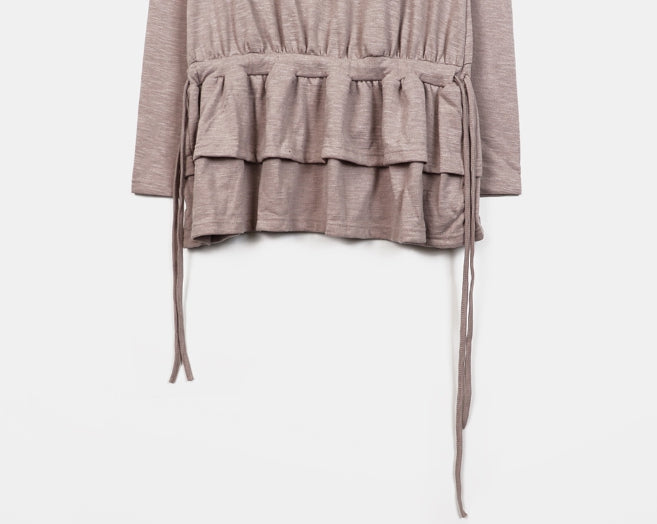 リポンフリルティアードストラップラウンド長袖Tシャツ