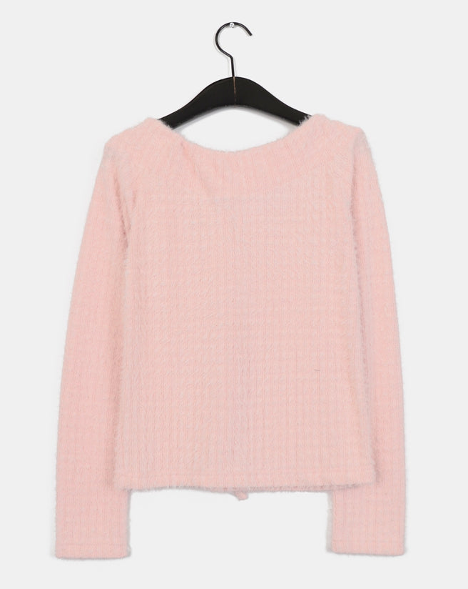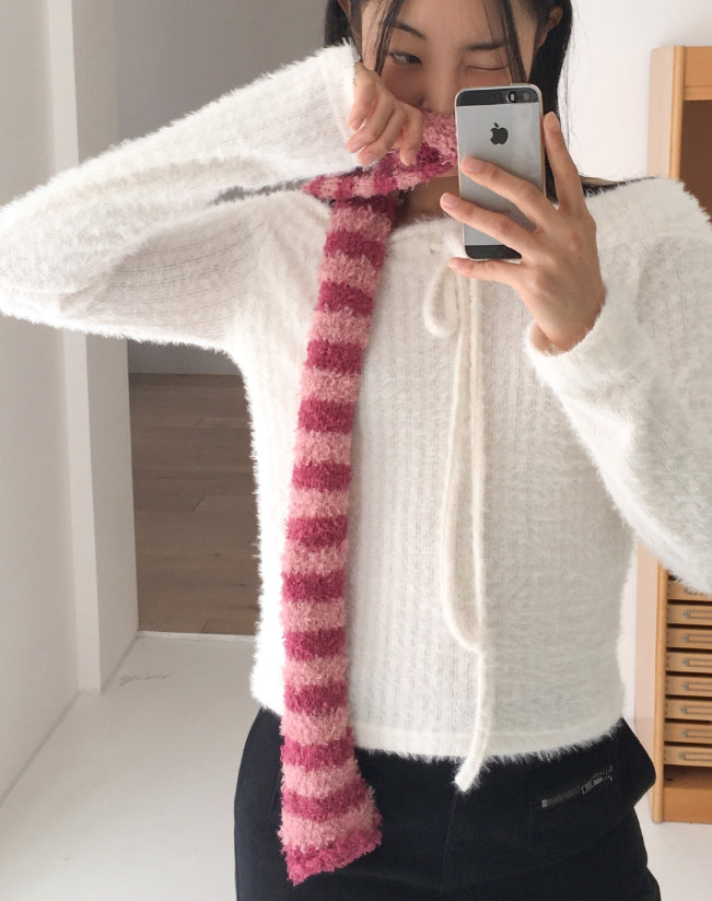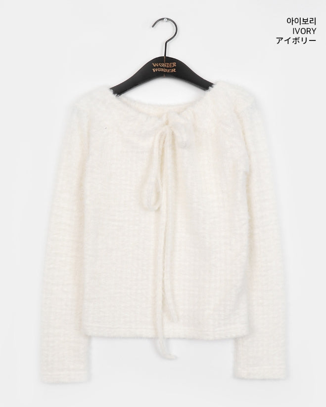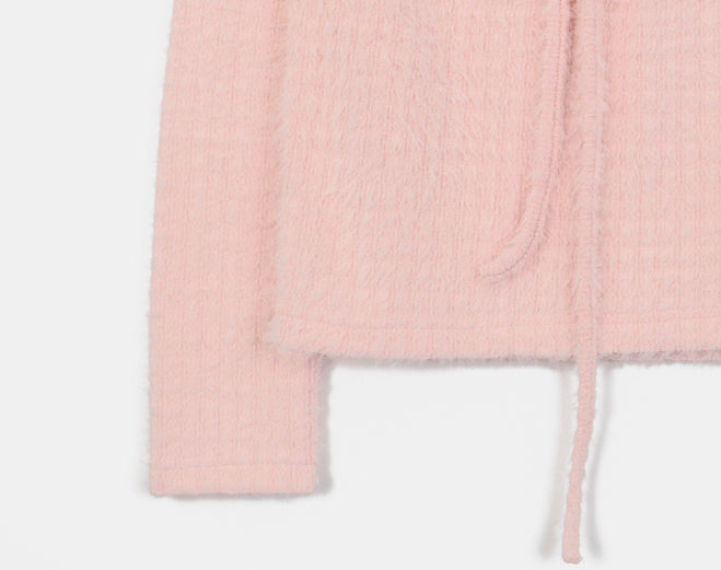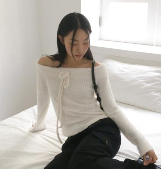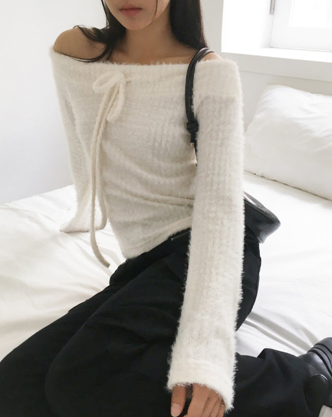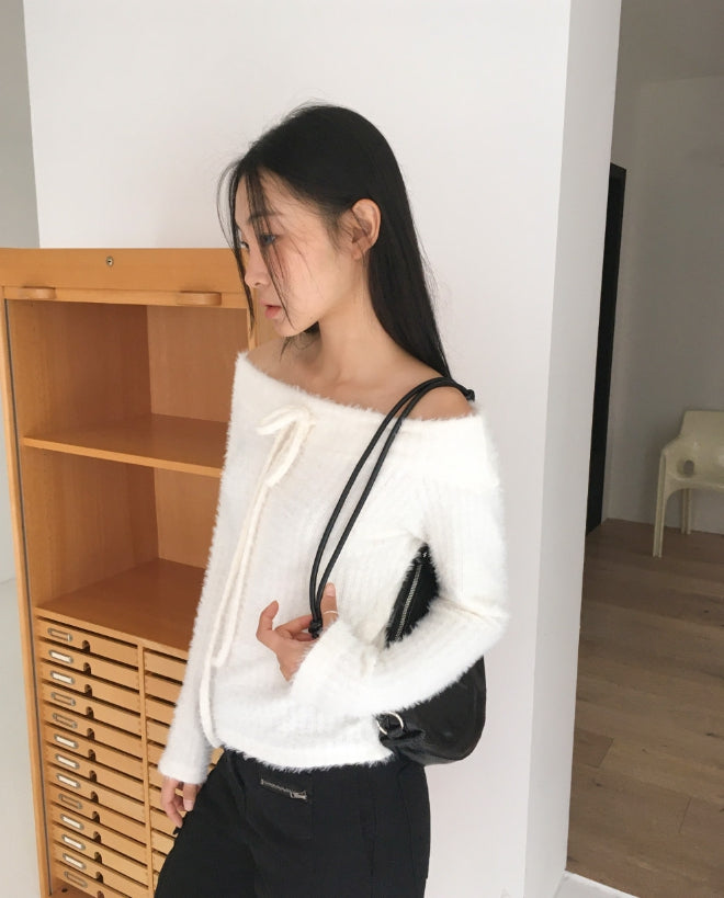 Little Off-Shoulder Ribbon Strap Angora Knitwear