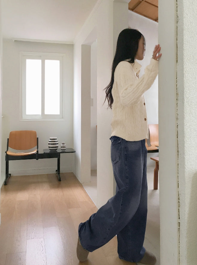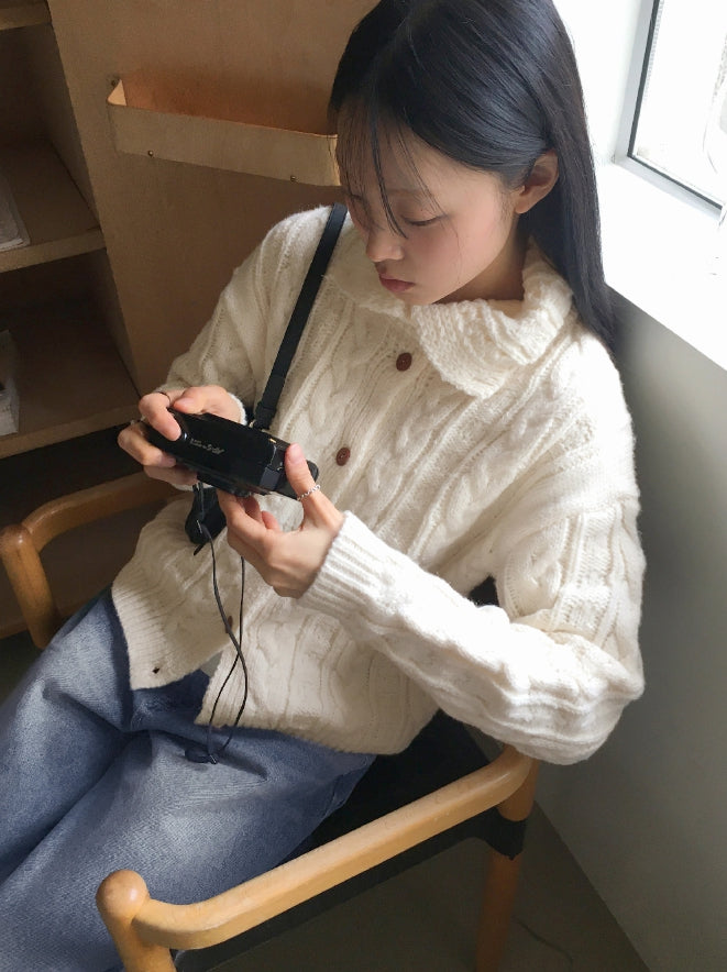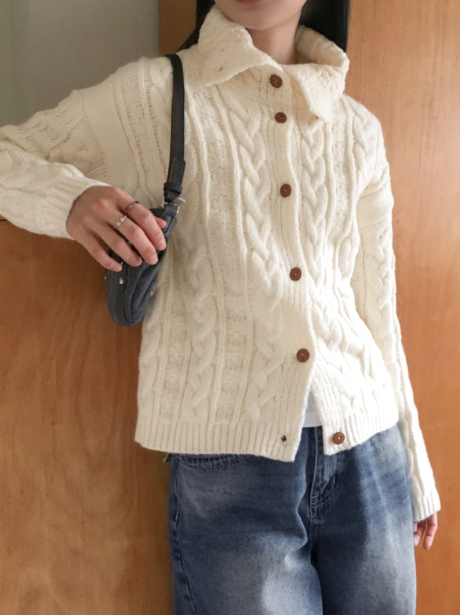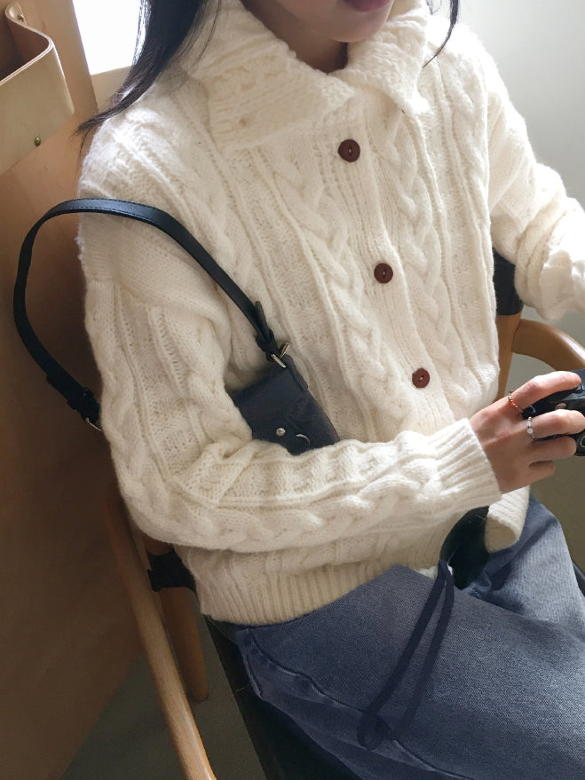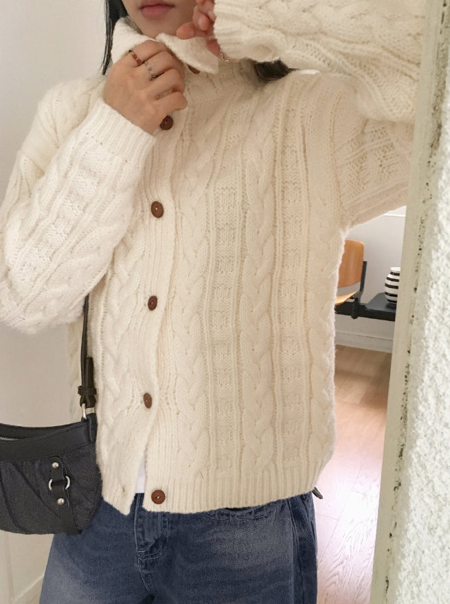 Robe Collar High-Neck Avant Cable Knit Long Sleeve Cardigan