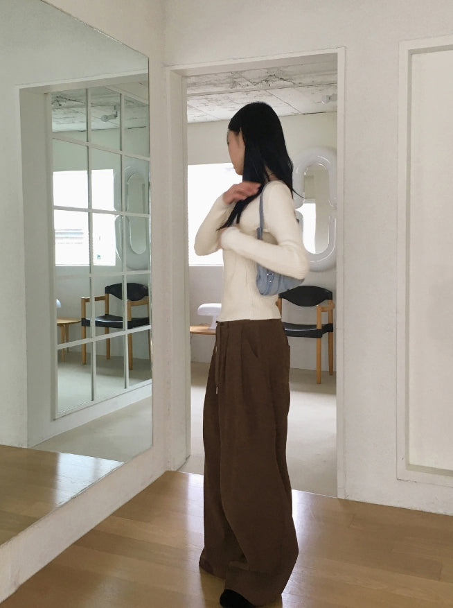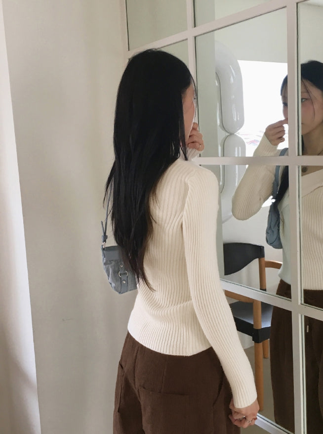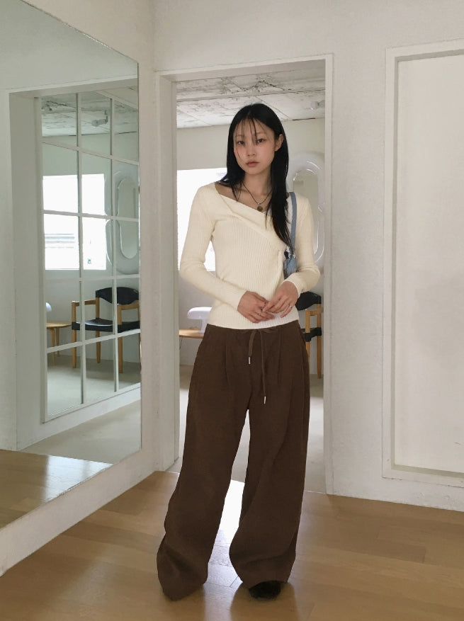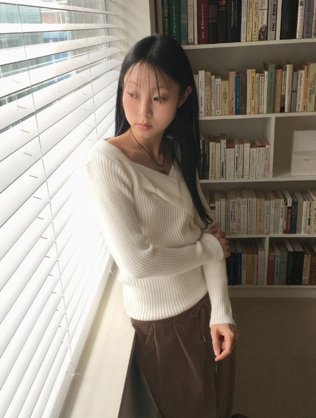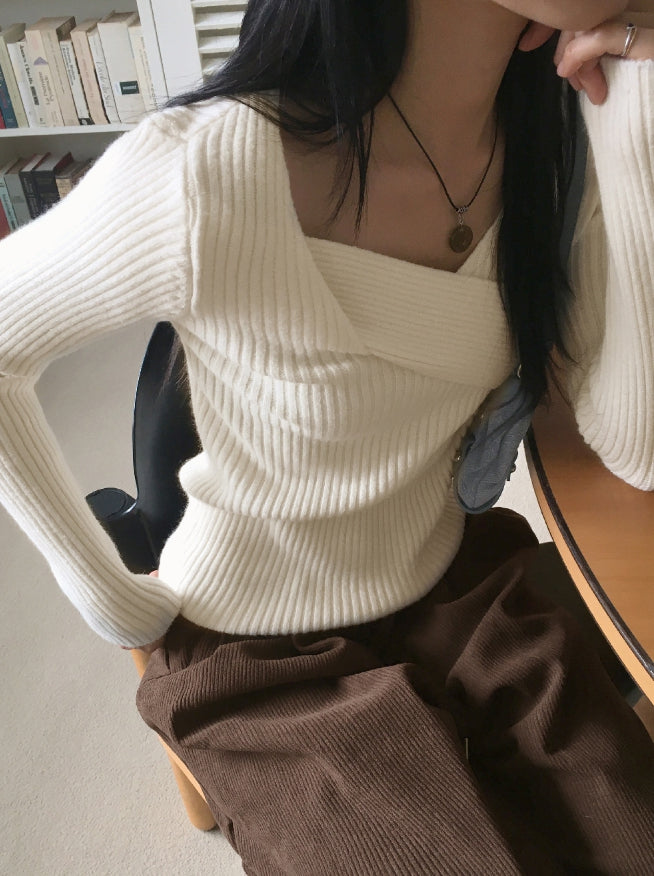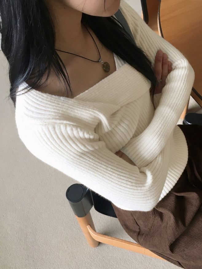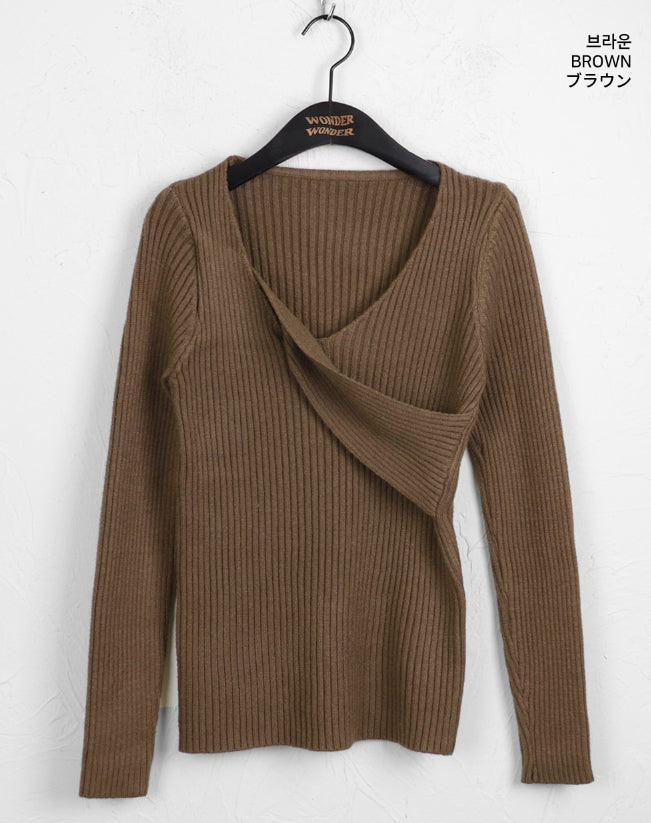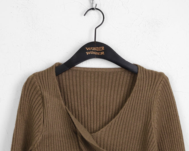 Robeil Twist Wrap V-neck Ribbed Long Sleeve Knit