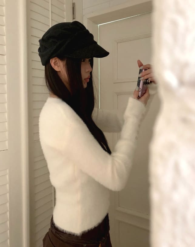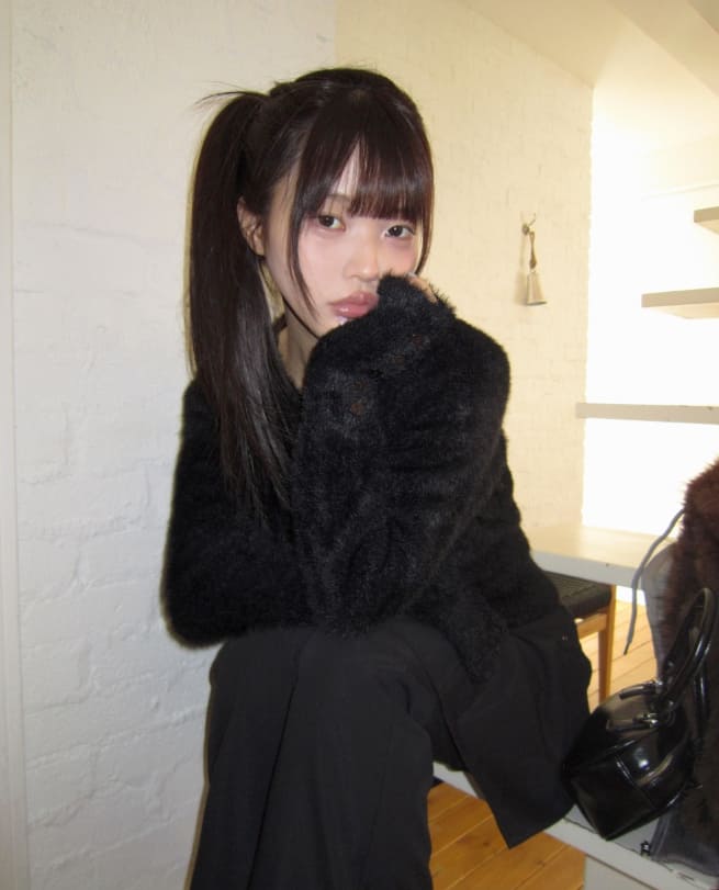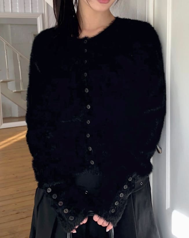 Rodan Angora round neck fur cardigan