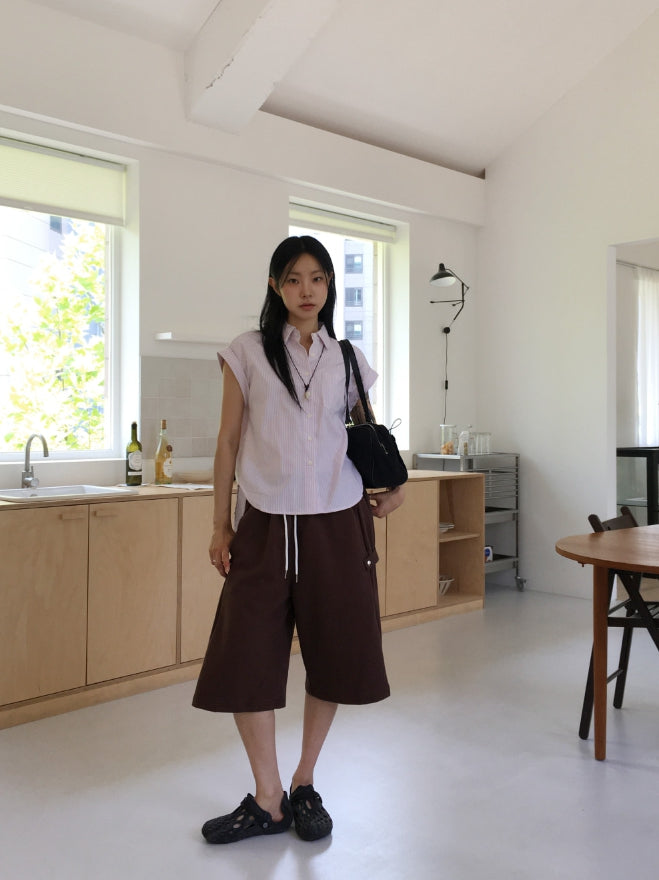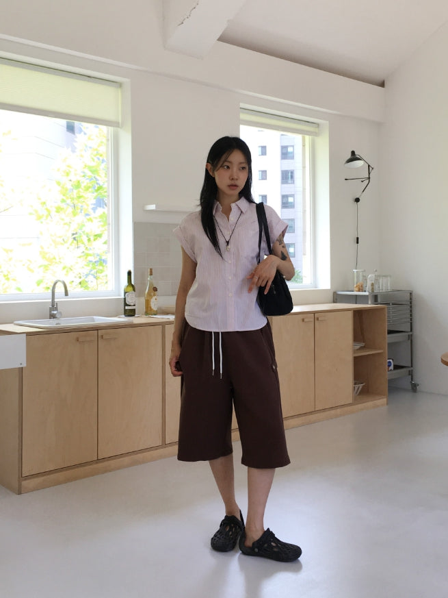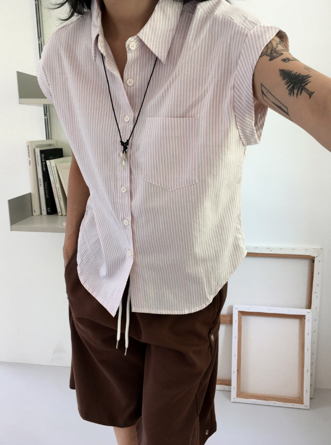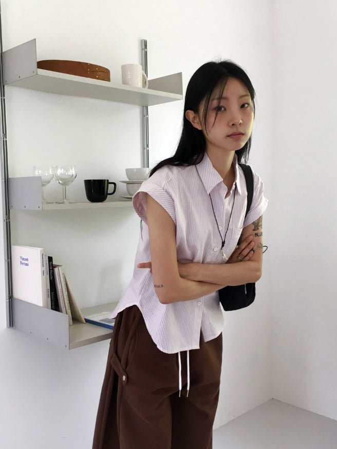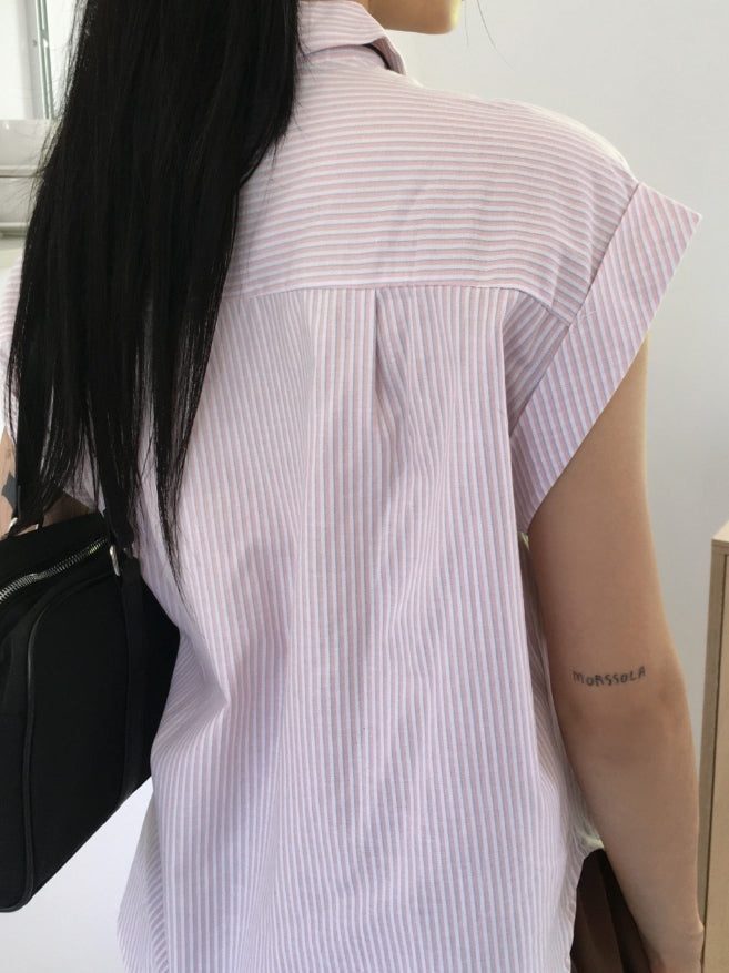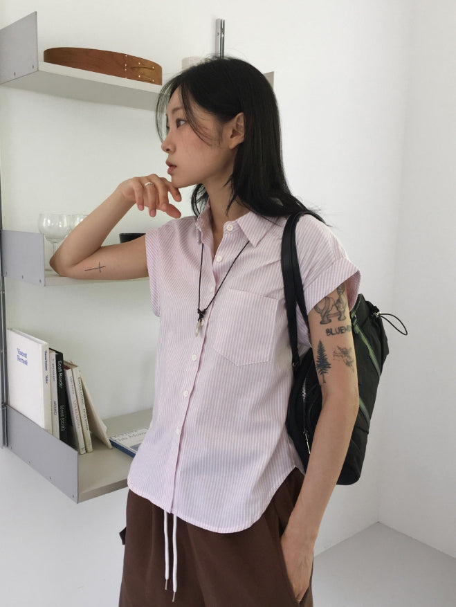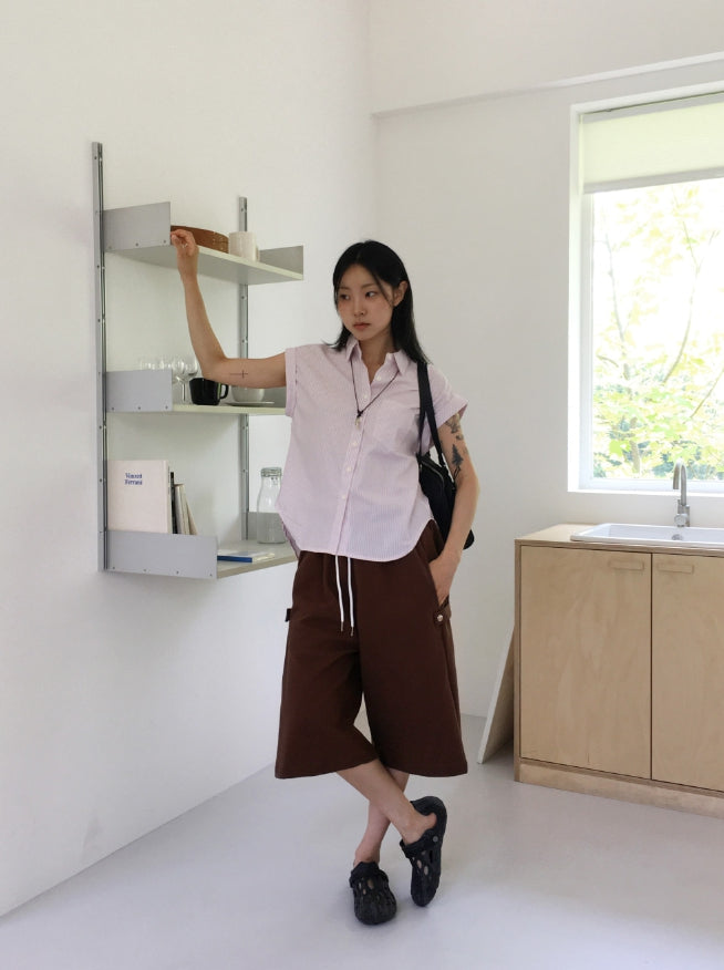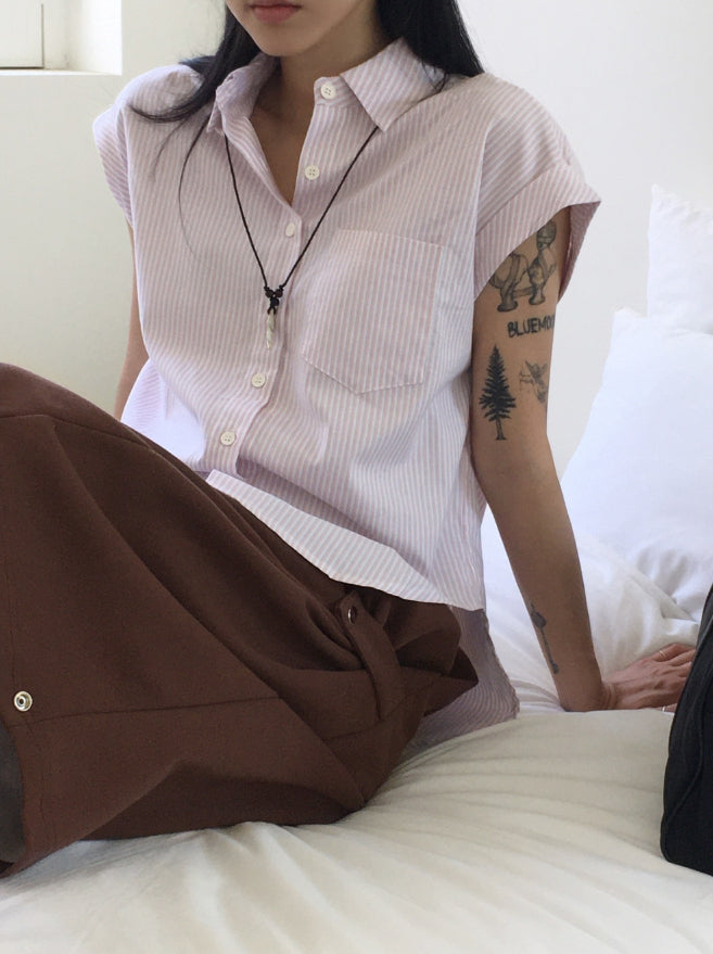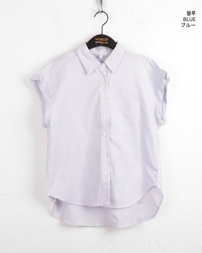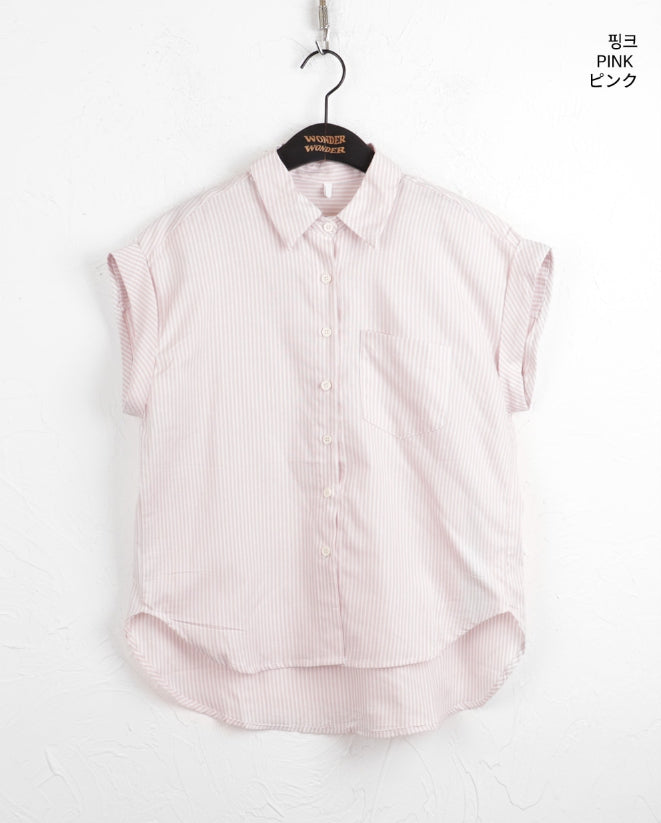 ロモスリムフィットストライプロールアップ半袖シャツ