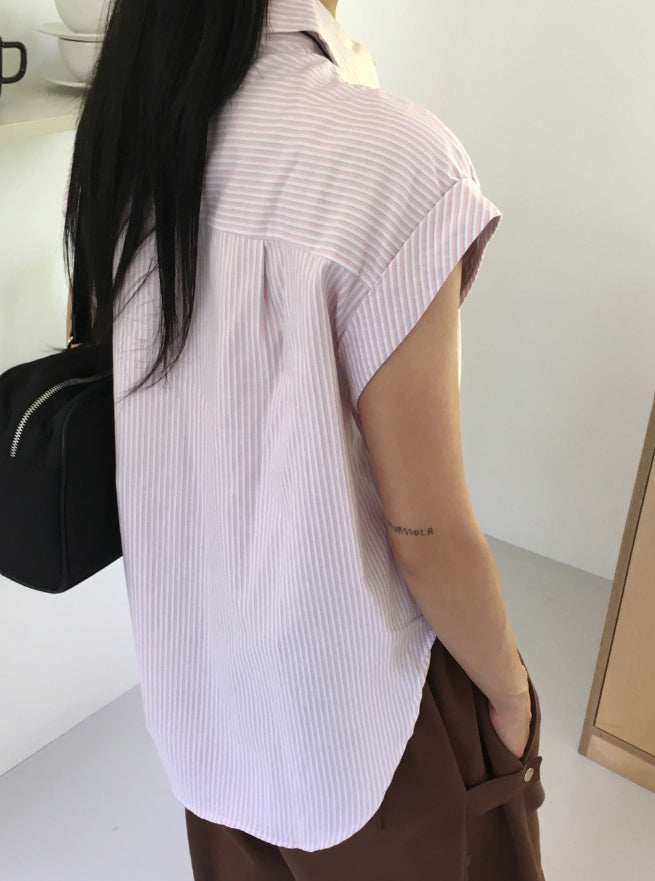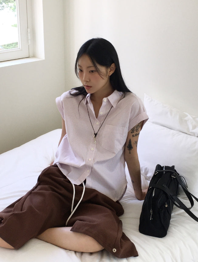 Romo Slim Fit Stripe Roll-Up Short Sleeve Shirt