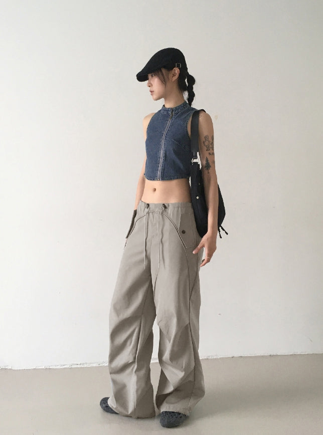 ロンバーポケットストリング切断ワイドツーウェイパンツ