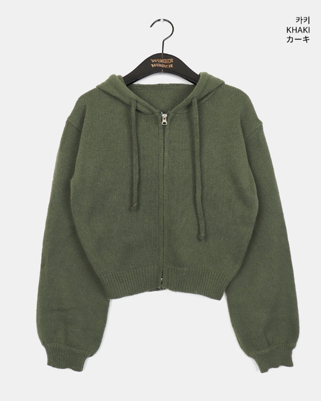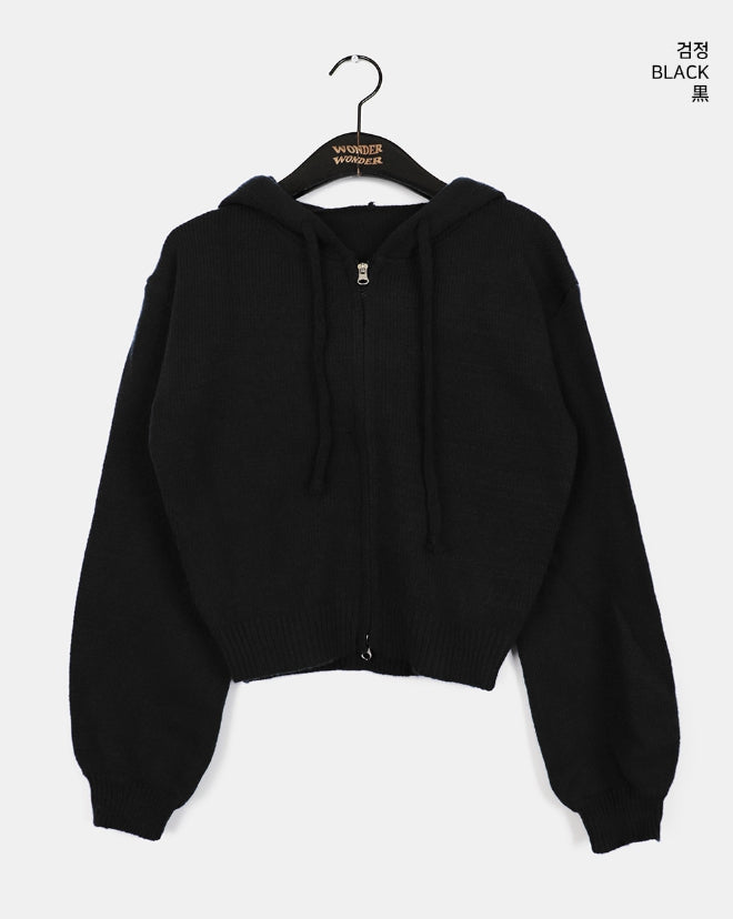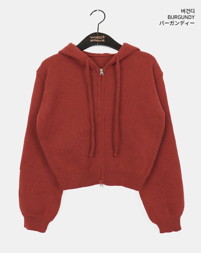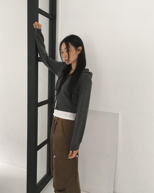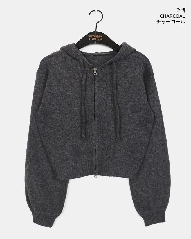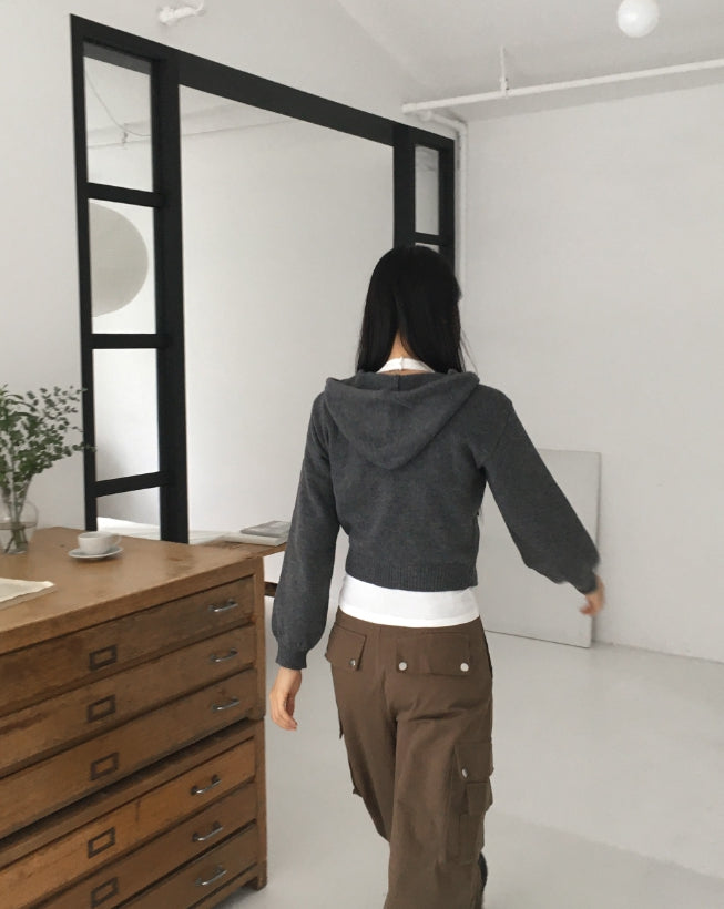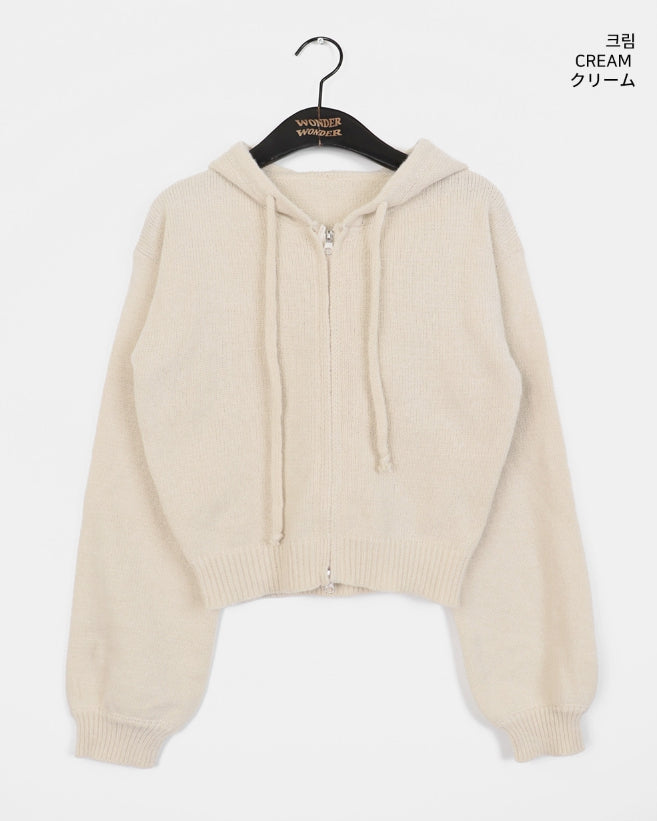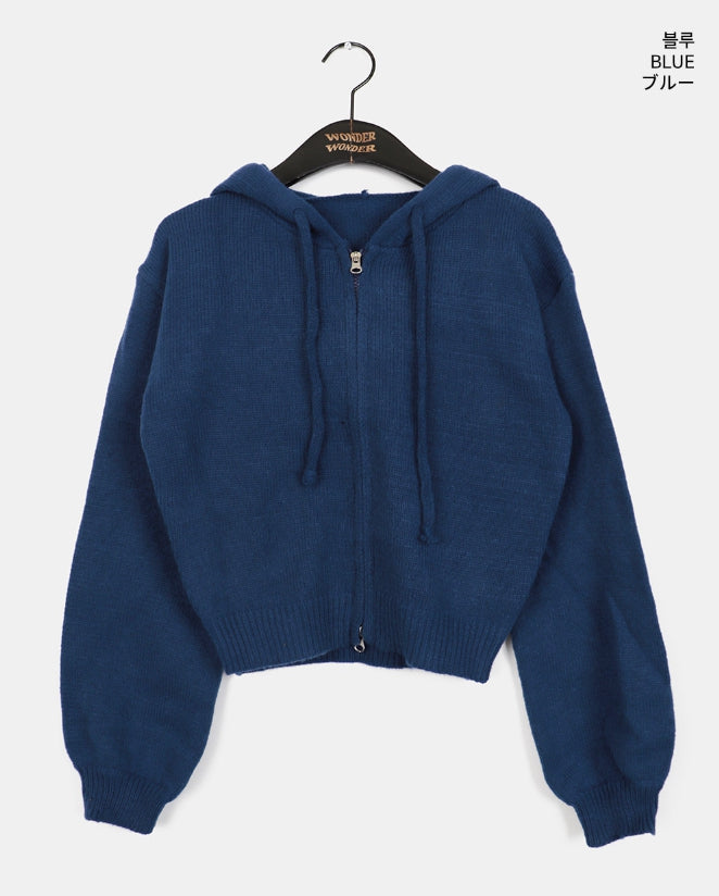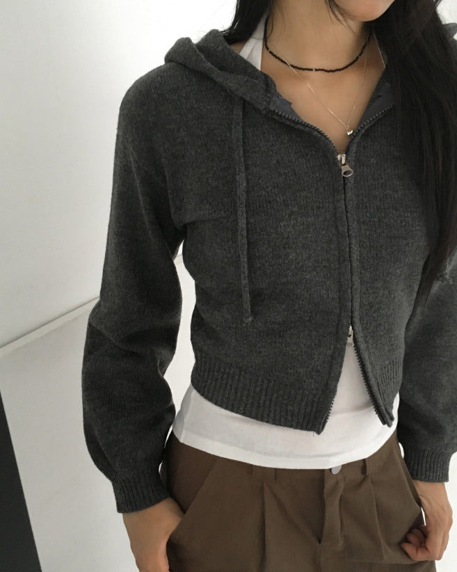 Ronky Two Way Cropped Hooded Knitwear Zip-Up