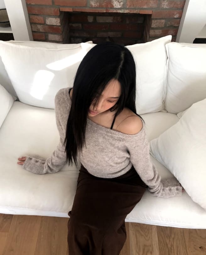 Rudan lip-neck button knit