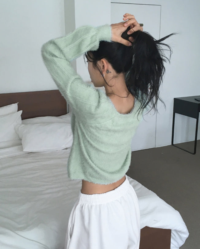 ルワンソフトアンゴラスクエアネックニットカーディガン
