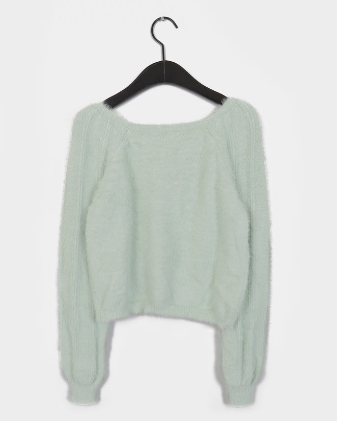 Ruwan Soft Angora Square Neck Knit Cardigan
