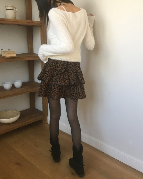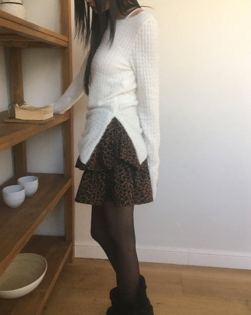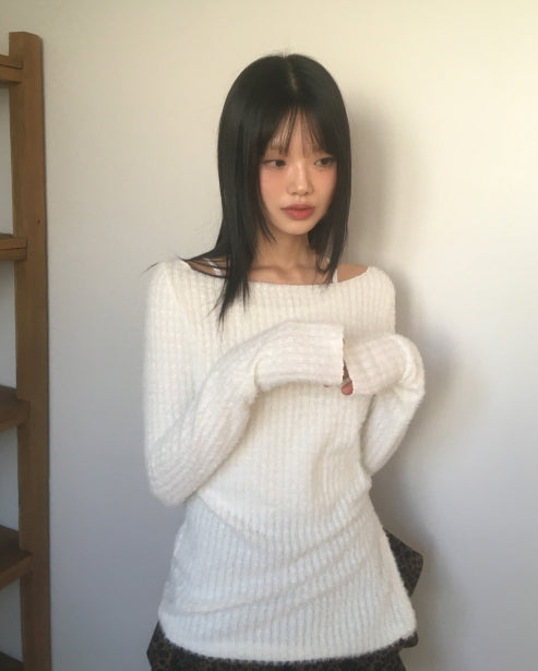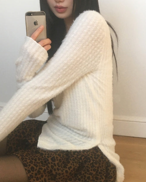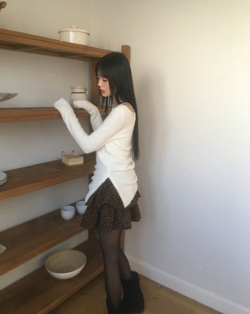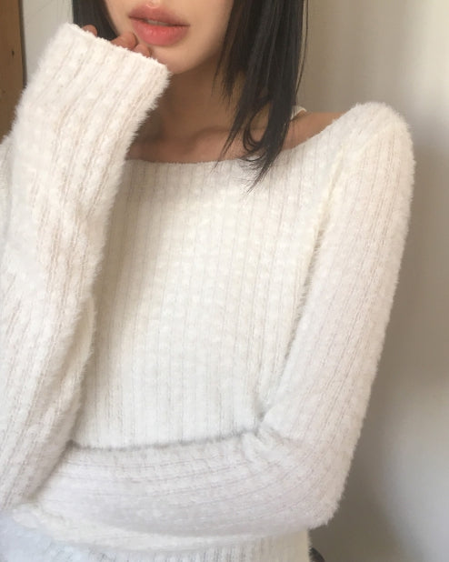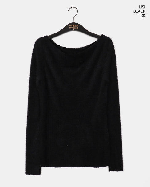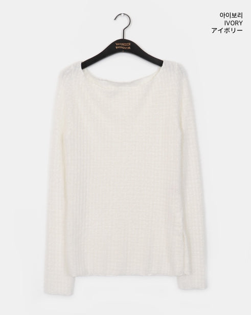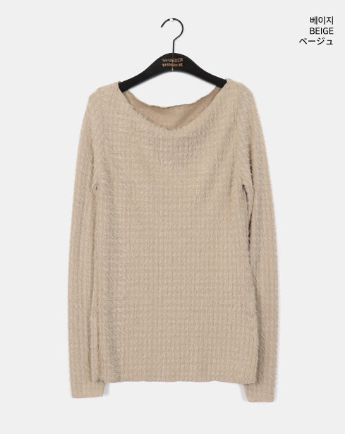 Saff Fur Slit Button Boat Neck Knit T-shirt