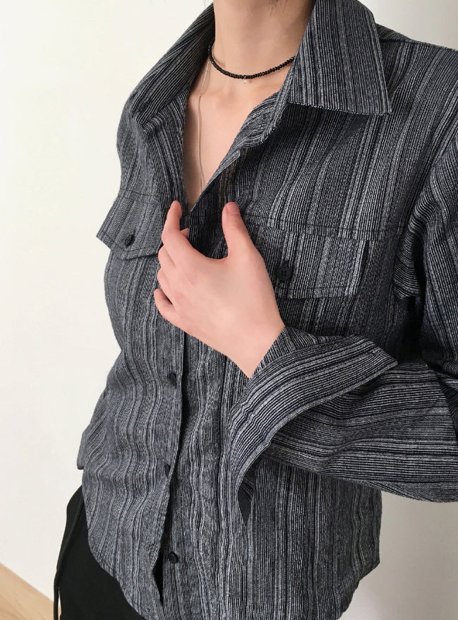 Sahi Vintage Stripe Pocket Roll Crop Long Sleeve Shirt