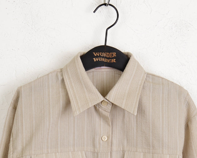 サヒヴィンテージストライプポケットロールクロップ長袖シャツ