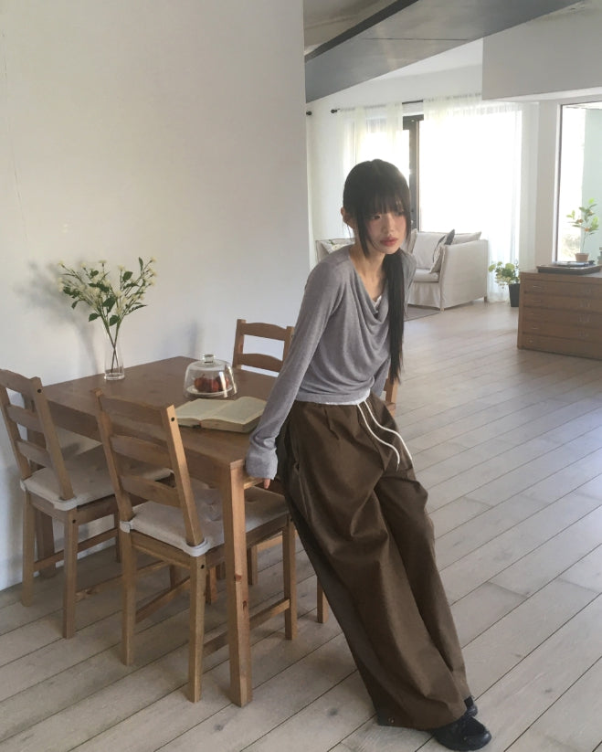 サンド裏ポケット裾スナップピンタックコットンパンツ