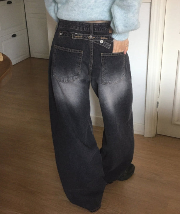 センブバックアジャスターボタンウォッシュ加工デニムパンツ