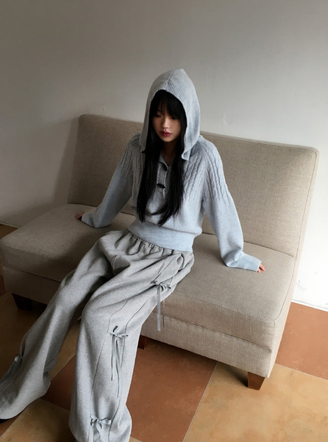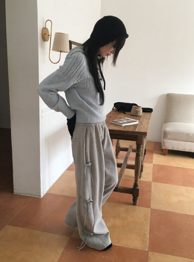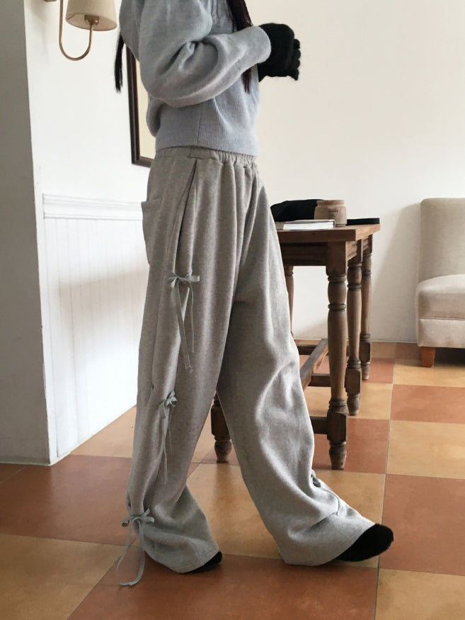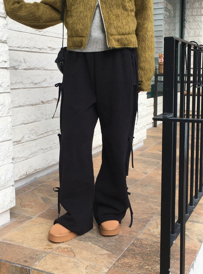 Sento Balloon Side Ribbon Pile Training Brushed Long Wide Pants