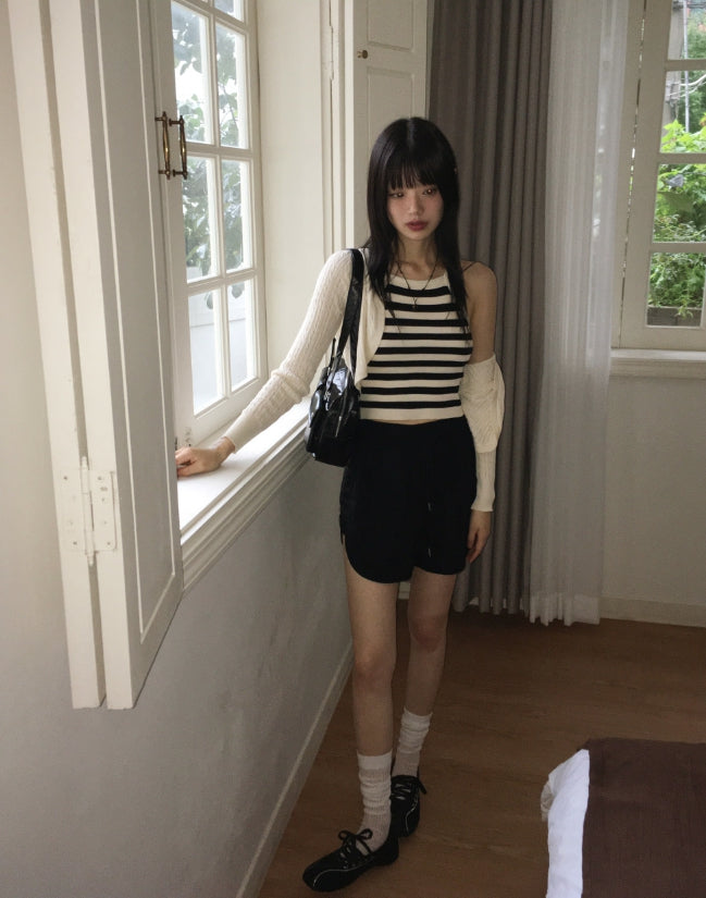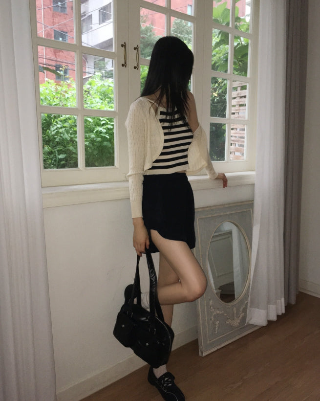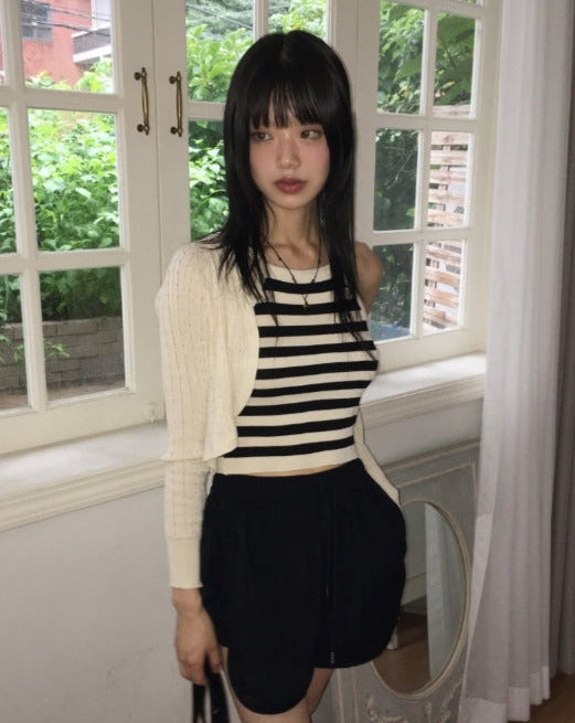 [SET] Zpin Stripe Sleeveless Cable Bolero Cardigan Set
