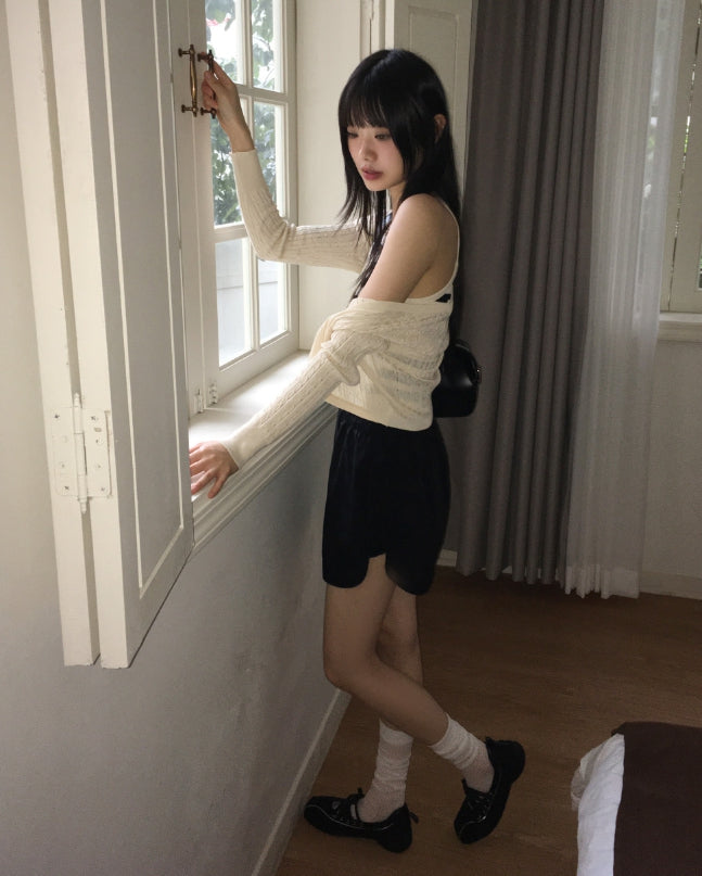 ズピンストライプキャミソールケーブルボレロカーディガンセット