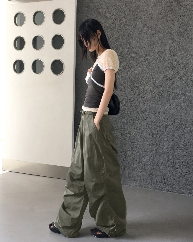 シャンツシャーリングプリーツシースルーパフ半袖Tシャツ