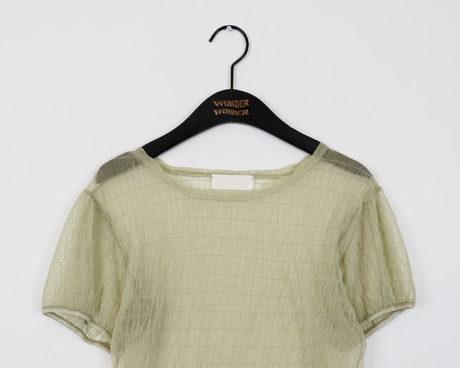 シャーンズシャーリングしわシースルーパフ半袖Tシャツ