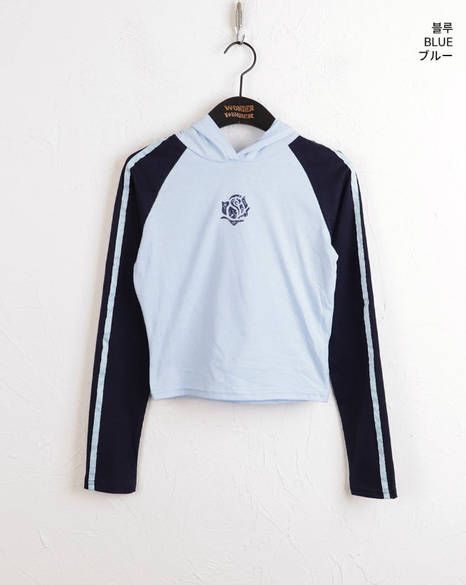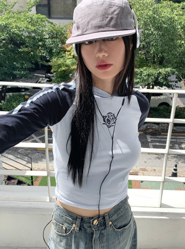 Shima Raglan Strap Color Matching Crop Hood T-Shirt
