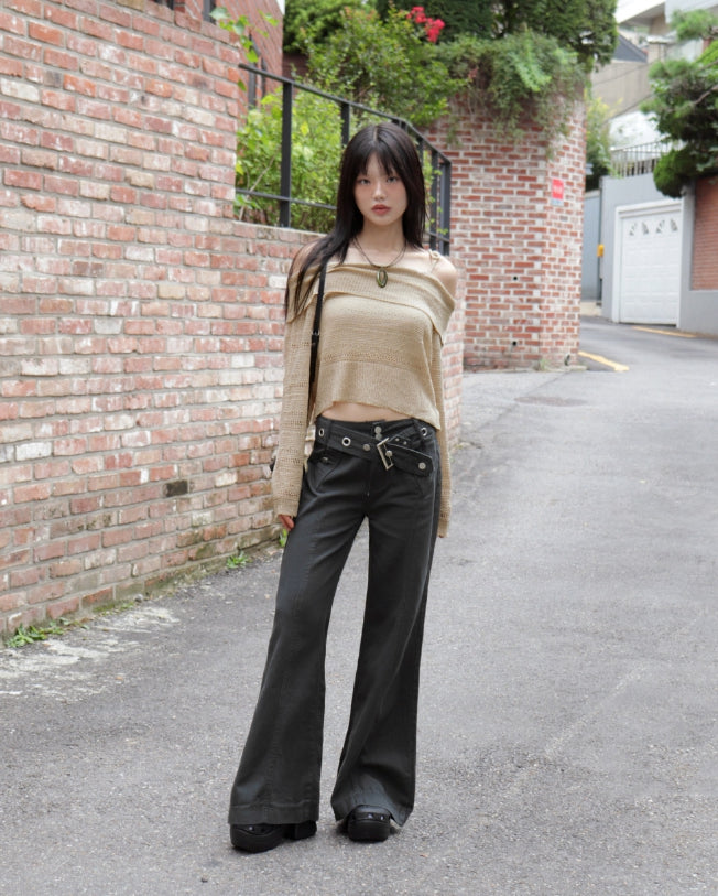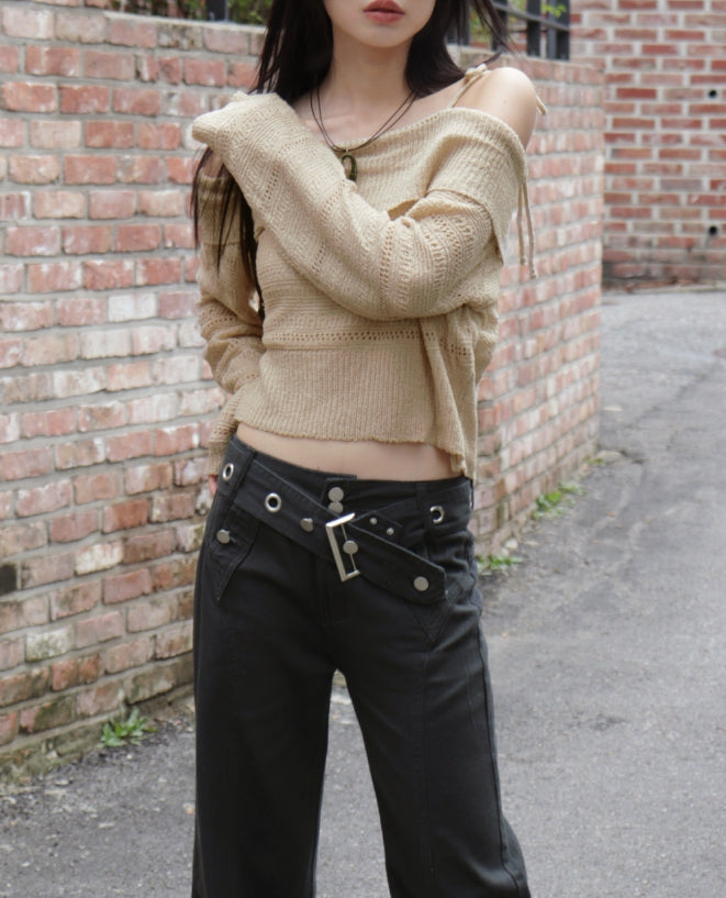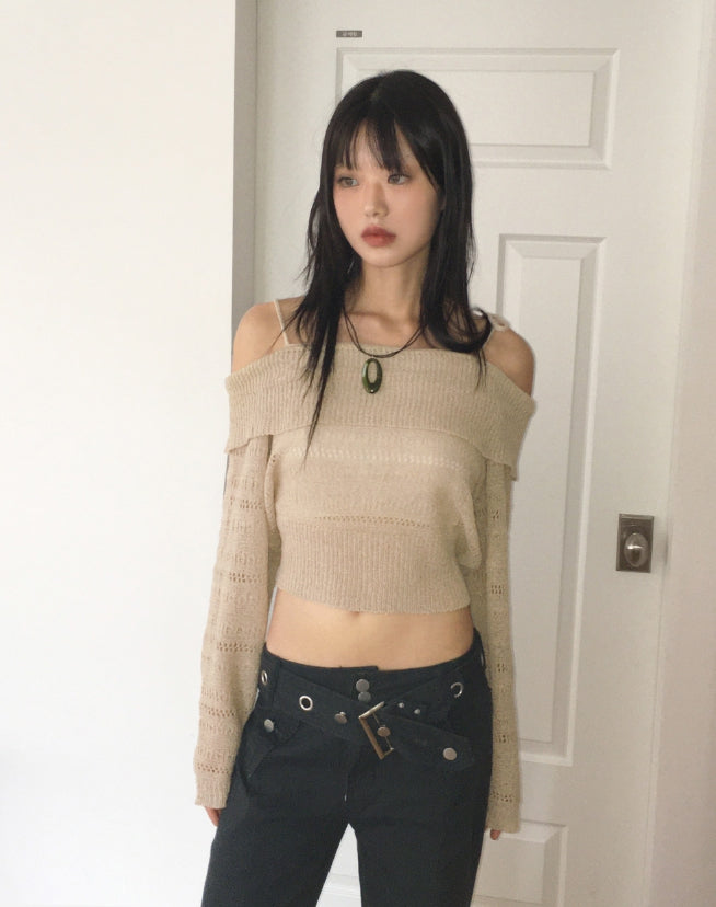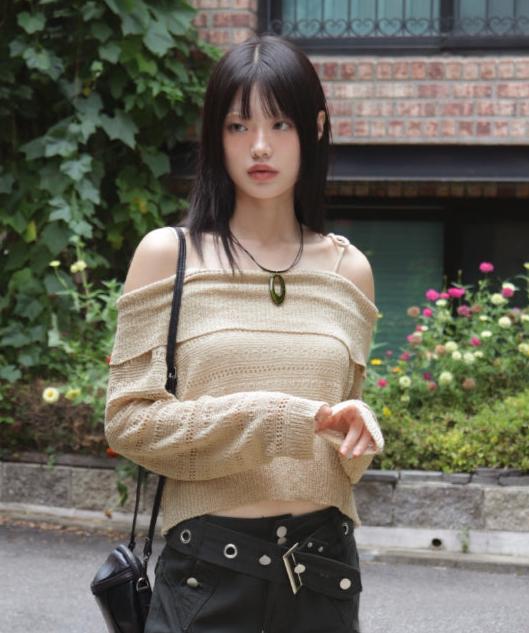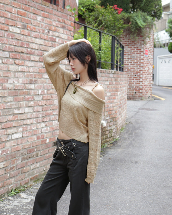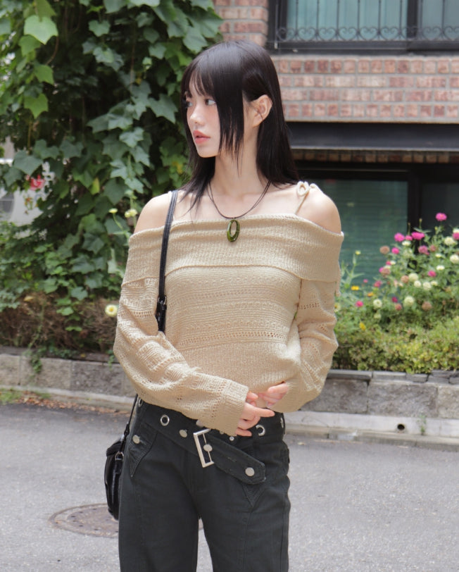 Shm Punching Skashi Strap Off-Shoulder Knitwear