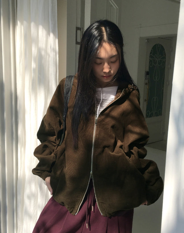 Sideon Corduroy Two-Way Hood Zip-up Jacket