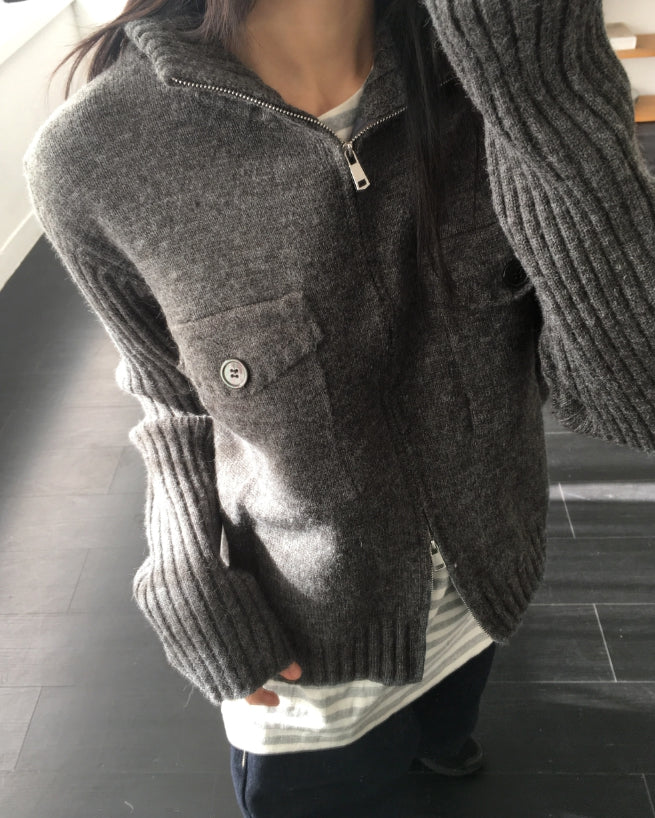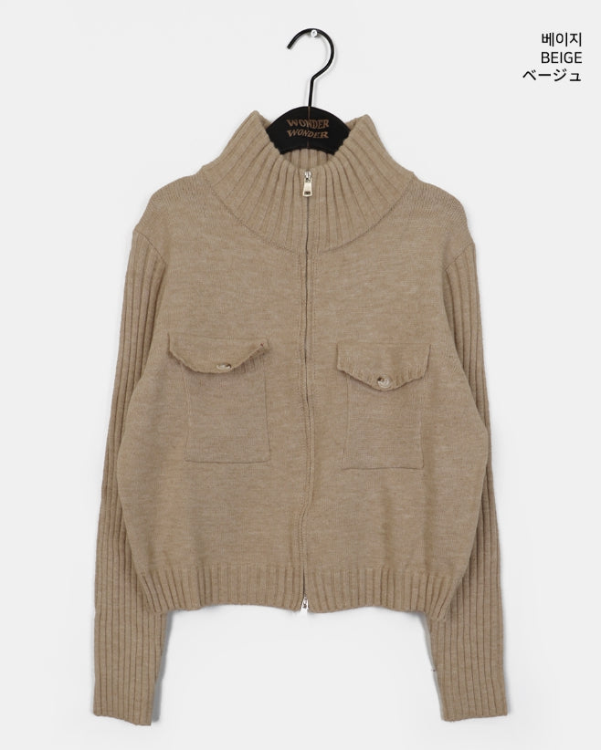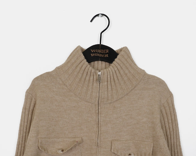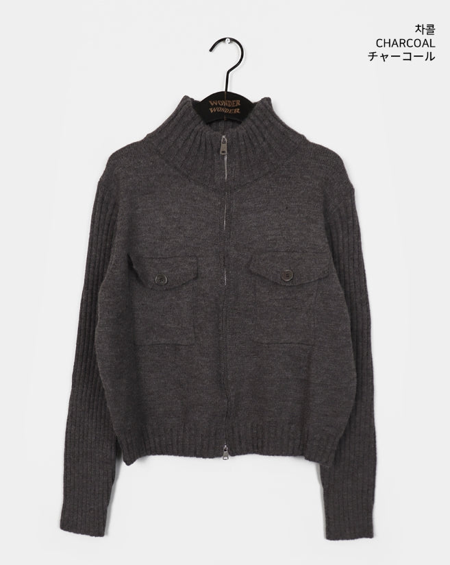 シーメンリブハイネックポケットツーウェイニットジップアップ